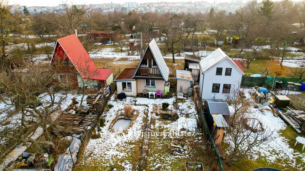 Na pozemku stojí zděná dvoupodlažní chatka o zastavěné ploše 12 m², zapsaná v katastru nemovitostí. Disponuje komínem, v přízemí je místnost s kamny, v podkroví je další ložnice s možností vybudování "spaní" – ideální zázemí pro pobyt během sezóny.