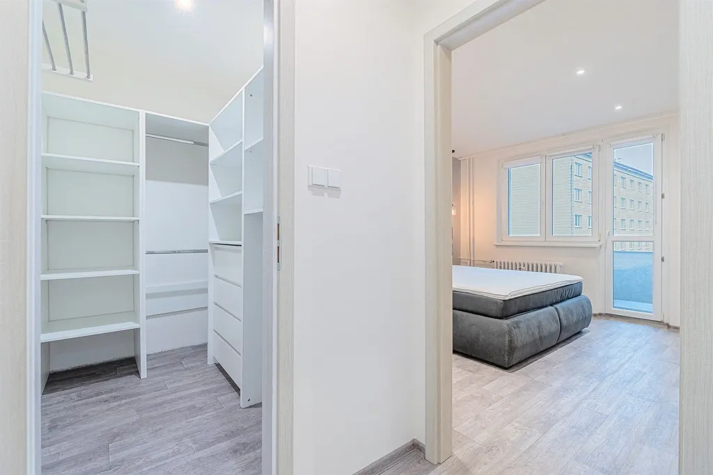 Byt je částečně vybavený volně stojícím nábytkem + vestavné prvky (viz. foto).