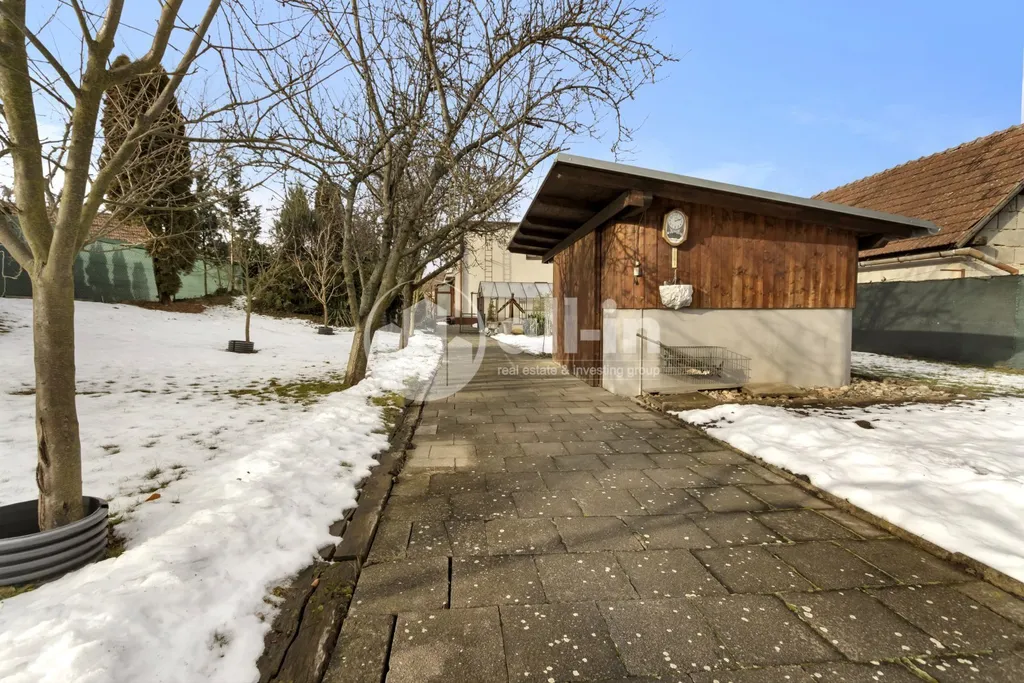 Na zahradě je možné využít pergolu, sklípek, skleník a kůlnu. Nemovitost má vlastní studnu.