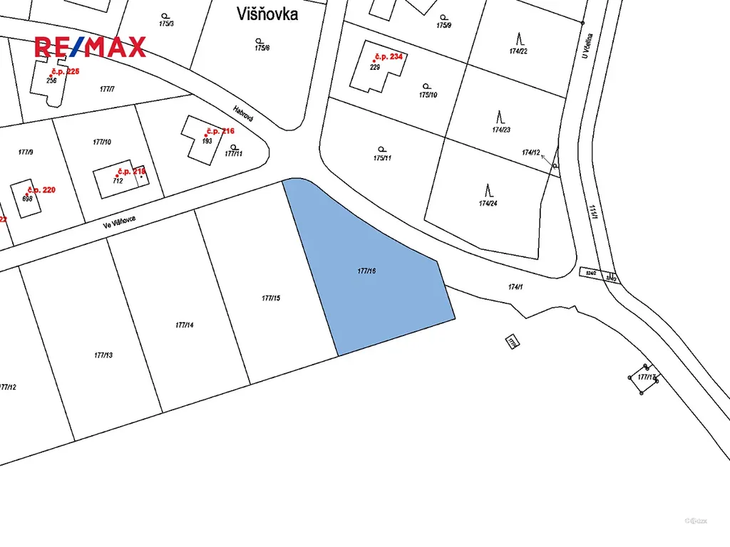 Pozemek se nachází na doslova unikátním místě - výjimečně tichá a odloučená lokalita s množstvím zeleně a omezeným počtem novostaveb, přímo za golfovým rezortem (roh ulic Habrová a Ve Višňovce).