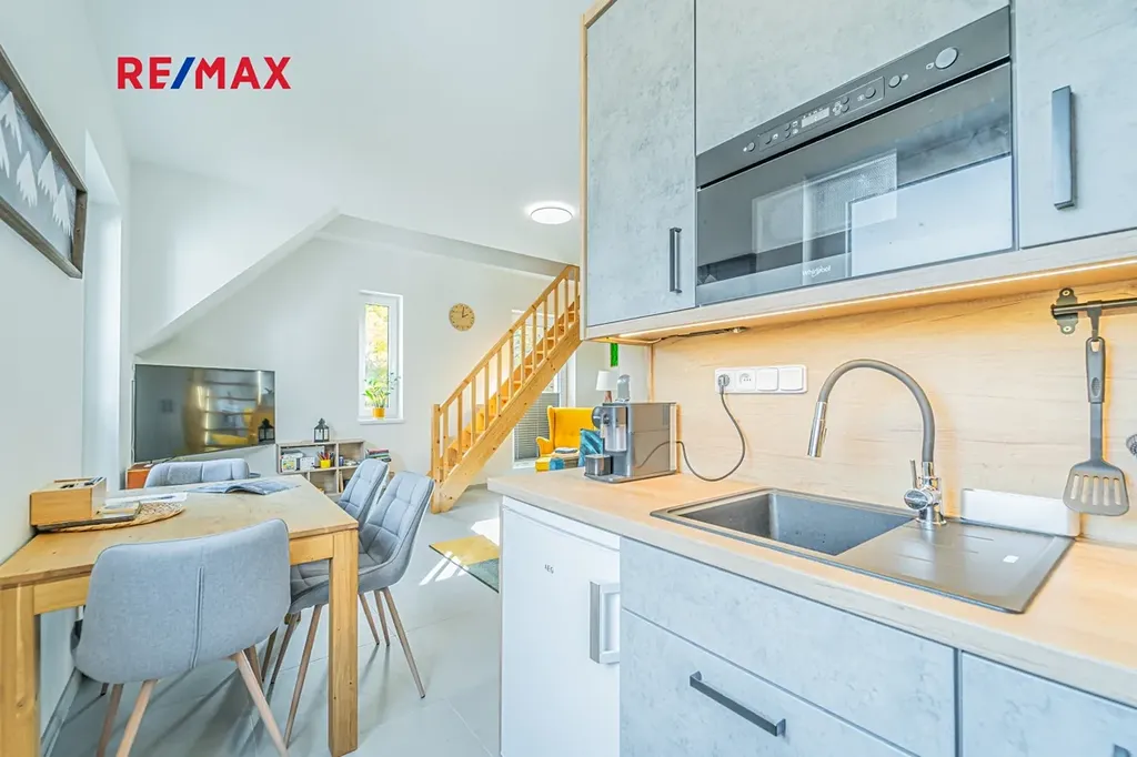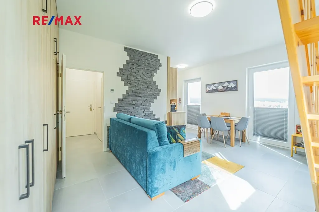 Ve výhradním zastoupení majitele nabízím krásný mezonetový byt o dispozici 2+KK, 67 m2 ve druhém (třetím nadzemním) podlaží v Nádražní ulici v Perninku. Celý dům prošel celkovou rekonstrukcí v roce 2022. Vše je nové a moderní. Dům je zateplený, plastová okna se žaluziemi, nové rozvody, plechová střecha, tepelné čerpadlo, vlastní bojler pro ohřev teplé vody, sušárna na boty (přeskáče) a lyžárna jsou v 1. podzemním podlaží.