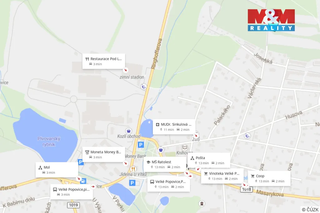 K prodeji nabízíme pozemek o výměře cca 1 030 m², evidovaný v katastru nemovitostí jako trvalý travní porost / pastvina, situovaný v obci Velké Popovice. Pozemek se nachází na okraji obytné zástavby rodinných domů, v klidné části obce. Jedná se o rovinatý a dobře přístupný pozemek, který je součástí většího celku. V případě zájmu je možné dokoupení navazujících částí a rozšíření výměry až na 3 090 m². Podle platného územního plánu je pozemek určen k zemědělskému využití. Přípustné je umístění drobné stavby související s tímto využitím, a to do maximální zastavěné plochy cca 25 m². Oplocení pozemku je možné řešit lehkým oplocením – ohradníky.