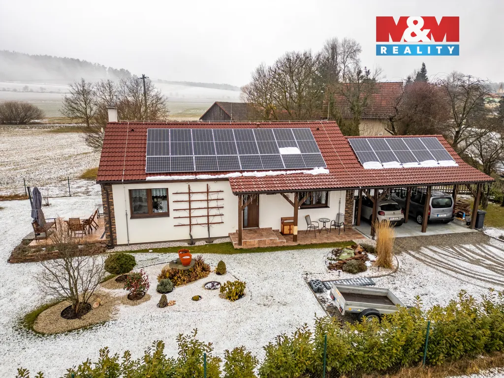 Nabízíme k prodeji novostavbu rodinného domu v klidné části obce Slabčice – Písecká Smoleč. Dům byl kolaudován v roce 2022, má dispozici 3+kk a je velmi prakticky a funkčně řešen. Součástí nemovitosti je udržovaná, rovinatá zahrada o výměře 657 m², ideální pro relaxaci i rodinné využití. Na dům navazuje kryté garážové stání pro dva automobily, k dispozici je také fotovoltaika a nabíječka pro elektromobil. O komfortní a úsporné bydlení se stará centrální rekuperace, která zajišťuje kvalitní výměnu vzduchu a snižuje náklady na vytápění. Voda je čerpána z vlastního vrtu a upravována pomocí filtrů a UV lampy. Dům je dále vybaven klimatizací a krbovými kamny. Celý pozemek je oplocený s vjezdem přes elektricky ovládaná vrata. Základní občanská vybavenost v obci. Pro prohlídku této atraktivní nemovitosti nás neváhejte kontaktovat.