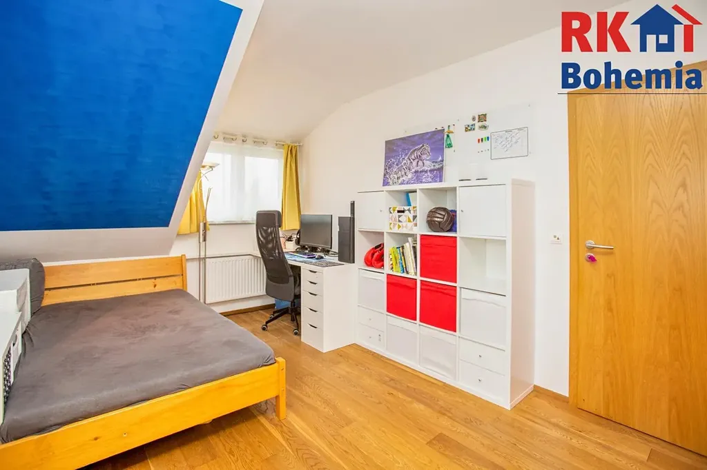Nemovitost vyniká nadstandardními úložnými kapacitami. Kromě prostorné garáže a přilehlé zahradní přístavby můžete využít další dvě půdy - jednu nad garáží a druhou v hlavní budově, přístupnou přes výsuvné schůdky z patra. Na vlastním oploceném pozemku navíc pohodlně zaparkujete až tři vozy.