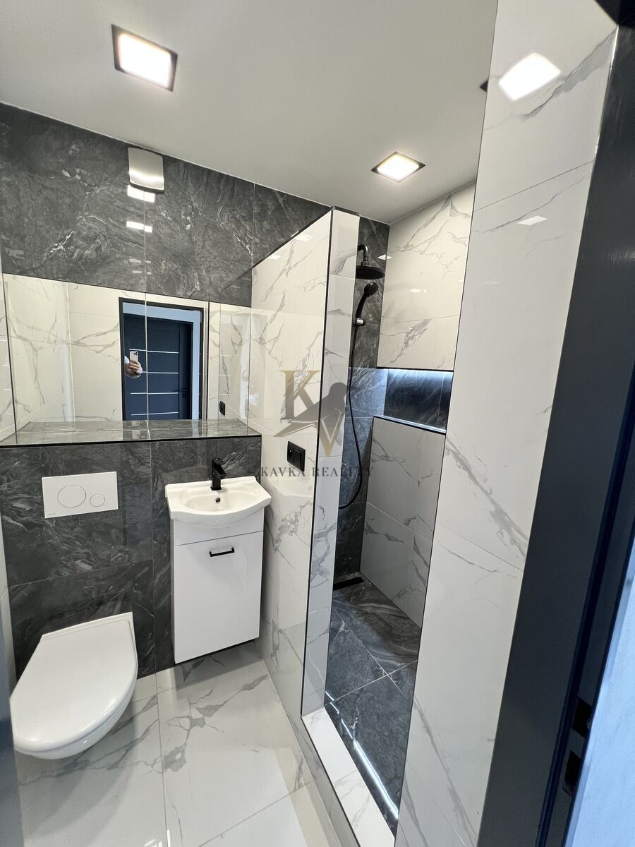 Je po kompletně moderní a nadčasově krásné rekonstrukci včetně nové kuchyňské linky s elektrospotřebiči ( sklokeramická varná deska s vestavěnou horkovzdušnou multifunkční troubou a odsavačem par vše kvalitní značky Gorenje a Whirlpool . ) Celá kuchyňská linka je v pěkném podsvícení , zabudovaného led pásku, který mění barvy. Koupelna a WC je zděná- rekonstruovaná- kde se nachází velký zděný sprchový kout osvětlený nikou s dekorativními policemi , ( ve sprše většinou poslouží jako neocenitelný úložný prostor pro šampon nebo sprchový gel, ve stěnách mimo ně slouží spíše jako police a má funkci dekorační – krásně se tady budou vyjímat květiny nebo třeba suvenýry z cest, či ručníky .) hranaté umyvadlo se skříňkou a zrcadlo zapuštěné v obkladu . Wc je závěsné značky Geberit . Krásná a kvalitní mramorová dlažba se nachází v kuchyni , chodbě v koupelně a na Wc . Ve zbylém pokoji se nachází plovoucí podlaha .