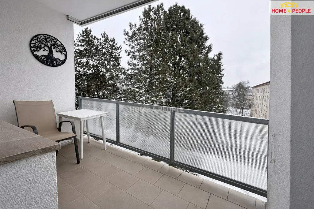 Byt má tři samostatné, neprůchozí pokoje, z jednoho je vstup na velkou lodžii. Na podlahách je kvalitní PVC. Vybavená kuchyňská linka (sporák, myčka nádobí, pračka). V kuchyni je i místo pro jídelní stůl. Koupelna je s vanou a toaletou. Prostorná chodba a šatna. Byt je vybaven základním nábytkem a má nové bezpečnostní dveře. Nachází se ve 4. patře bytového domu bez výtahu. Přímo před domem je zastávka MHD a možnost parkování na veřejném parkovišti.