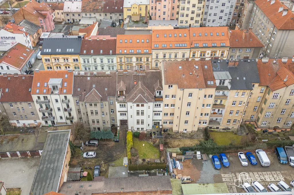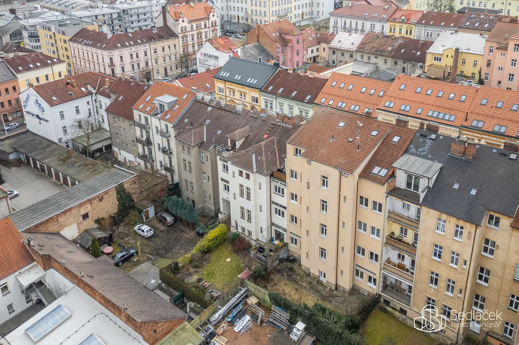 Velkou výhodou domu je společný dvorek, ideální pro posezení nebo klidné odpoledne. Dalším benefitem je docházková vzdálenost do centra Plzně – při svižné chůzi jste tam zhruba za deset minut.