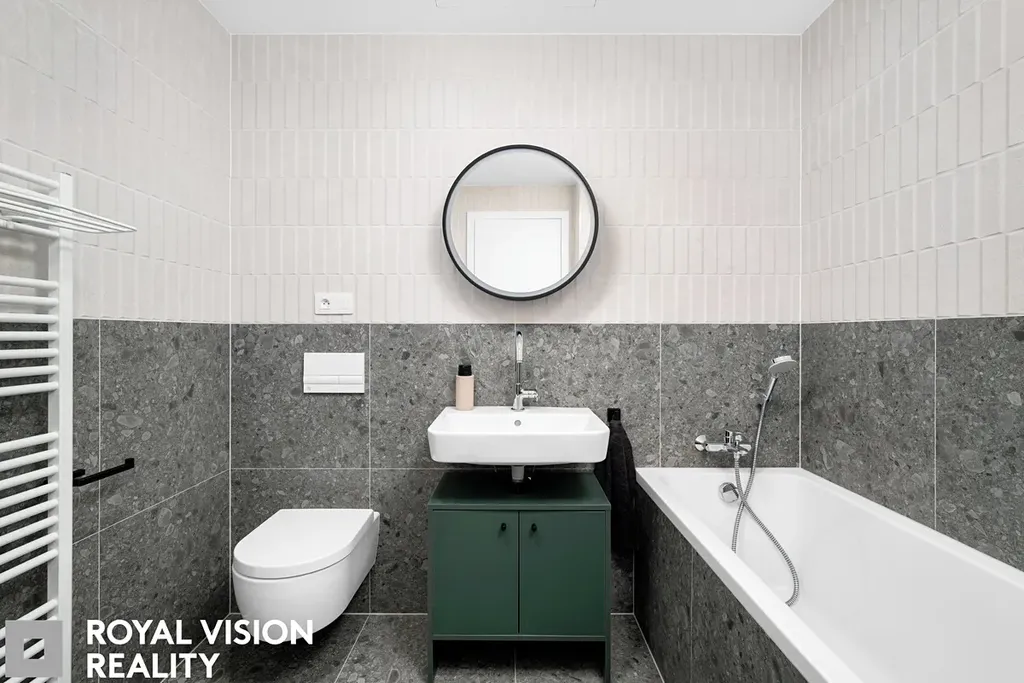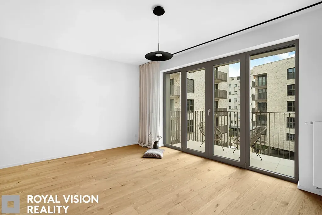 Pronájem moderního bytu 1+kk s balkonem, sklepem a parkovacím stáním – Pekárenský dvůr, Brno