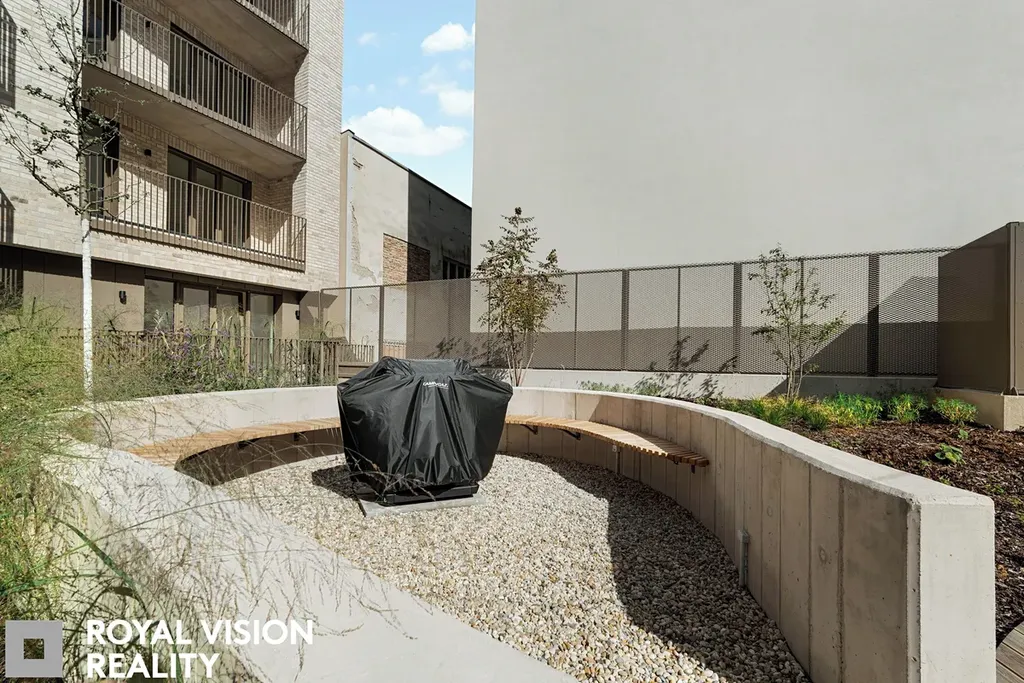 - Zelený vnitroblok s BBQ zónami a dětským hřištěm