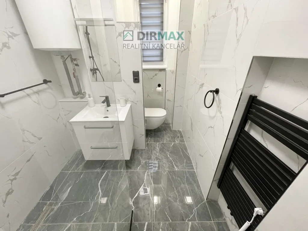 Další dvě místnosti jsou bez vybavení a zařízení, mimo moderní TV podstavy se skříňkou a stolek. Koupelna je projektově řešená s velkým sprchovým koutem. V koupelně je dále umyvadlo se spodní skříňkou, topný žebřík a závěsná toaleta. Do všech částí bytu jsou moderní, interiérové dveře. Na stropě interiérové osvětlení. Vše v bytě viz. foto.