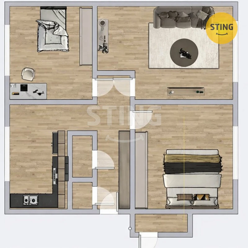 Podlahy tvoří kombinace nových laminátových podlah a dlažby taková ta poctivá kvalita, která má styl a vydrží. Dispozice bytu je navíc velmi praktická. Všechny pokoje jsou neprůchozí, takže každý má své soukromí. Rodiče si mohou večer v klidu odpočinout, zatímco děti si hrají nebo studují ve svém pokoji. Byt působí vzdušně, světle a díky svému umístění také překvapivě klidně skoro žádní sousedé znamenají, že vás nikdo neruší, a vy si můžete dopřát chvíle pohody přesně tak, jak je máte rádi.