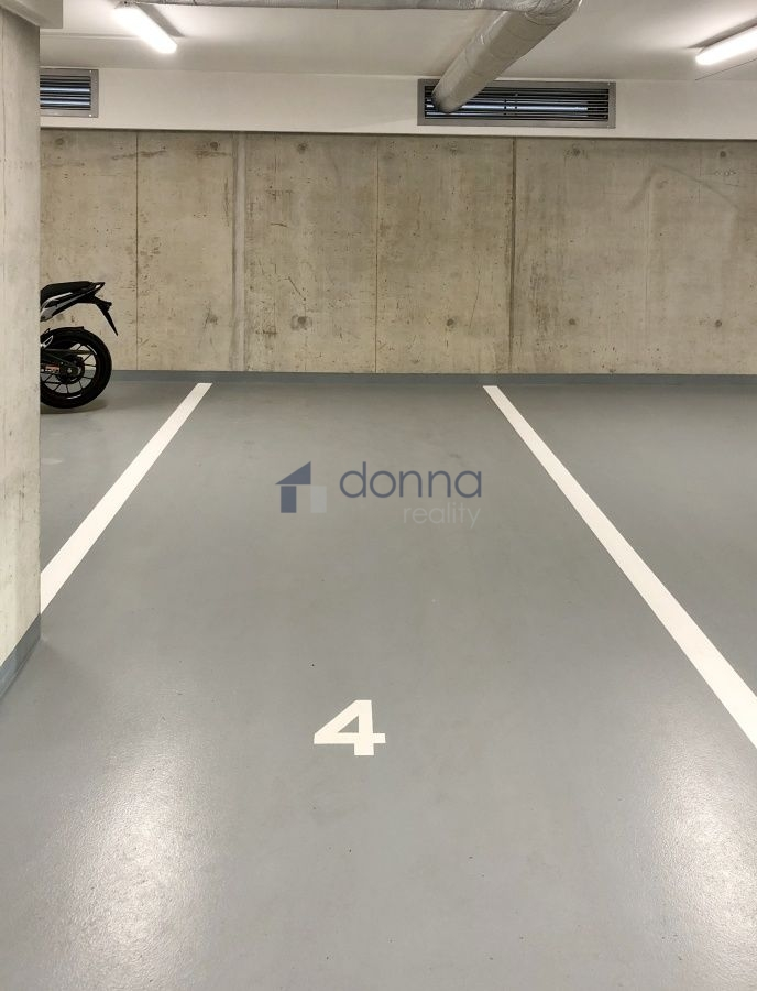 Byt je vybavený kuchyňskou linkou se spotřebiči (lednice s mrazákem, varná deska, elektrická trouba, digestoř), možno zanechat nábytek, velkoformátová okna s předokenními žaluziemi orientována na jih, koupelna se sprchovým koutem a toaletou, ve vstupní chodbě vestavěná skříň a prostor pro umístění pračky, dřevěná podlaha, v koupelně velkoformátová dlažba. Obývací pokoj i ložnice jsou vybaveny klimatizačními jednotkami. Podzemní garážové stání a sklepní kóje.