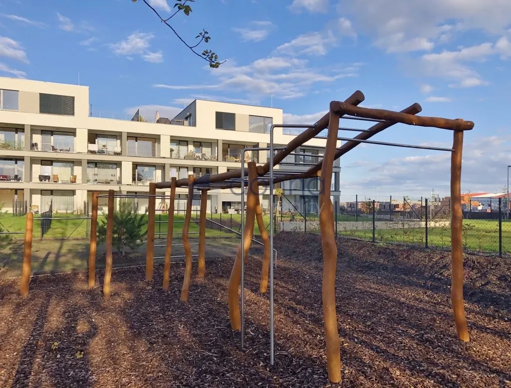 V rámci bytového komplexu jsou dětská hřiště a menší park.