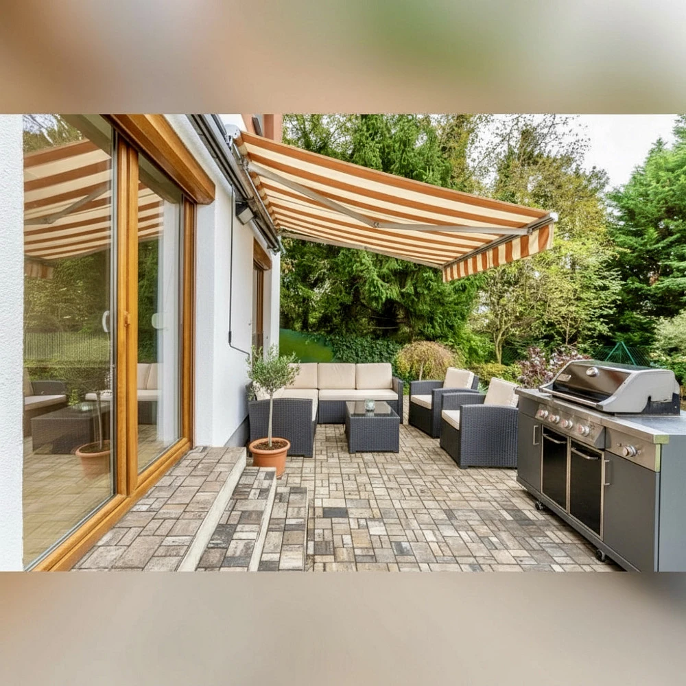 • Zahrada 341 m² s prostornou terasou a výsuvnou markýzou, přístupnou z obývacího pokoje francouzskými okny. Ideální prostor pro rodinné posezení i relaxaci.