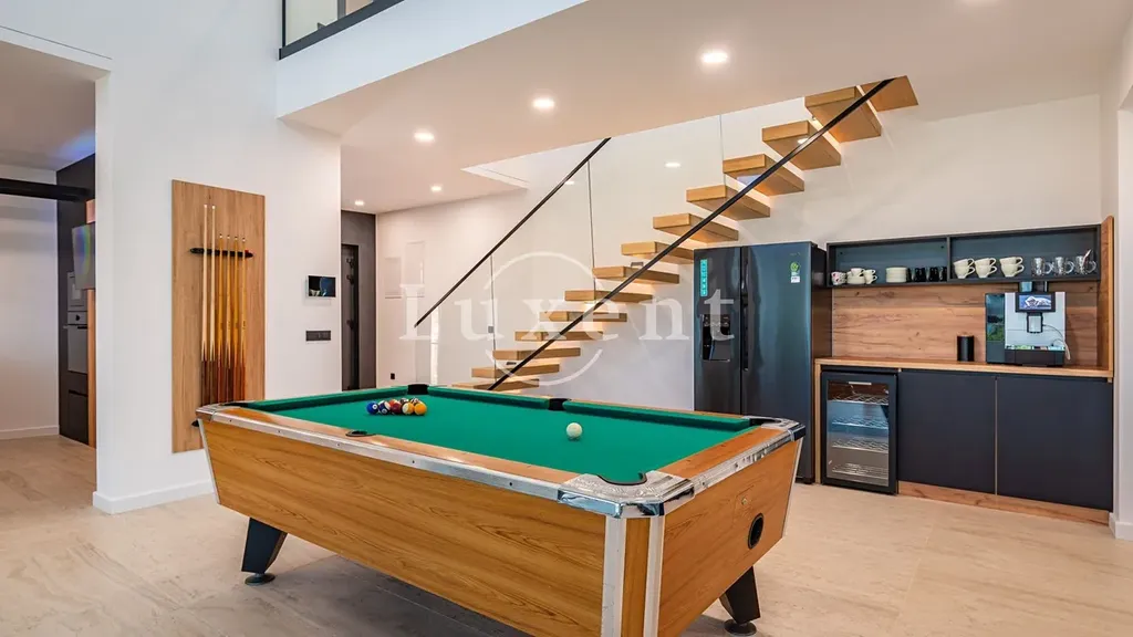 Tato vila je kompletně zařízena moderním nábytkem a spotřebiči, což zajišťuje vysoký standard pohodlí. Součástí nemovitosti je také parkovací místo za domem, které poskytuje pohodlí a bezpečné parkování pro majitele vozu.