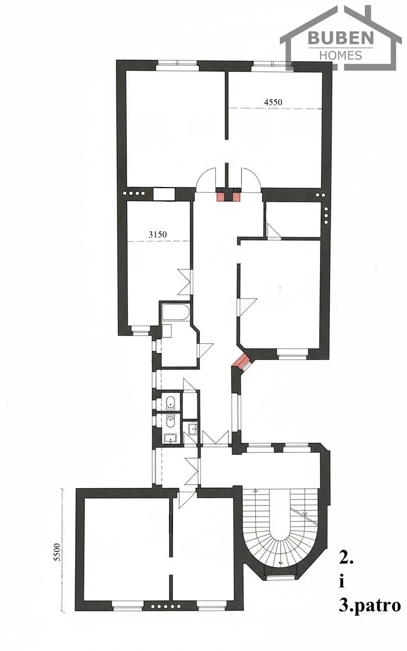 2.NP schodiště a dvě bytové jednotky: 3+1 o užitné ploše 127 m2 a jednotka 4+kk o ploše 67 m2.