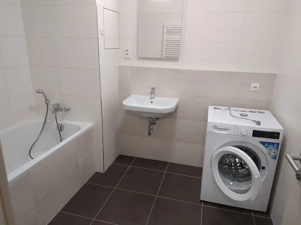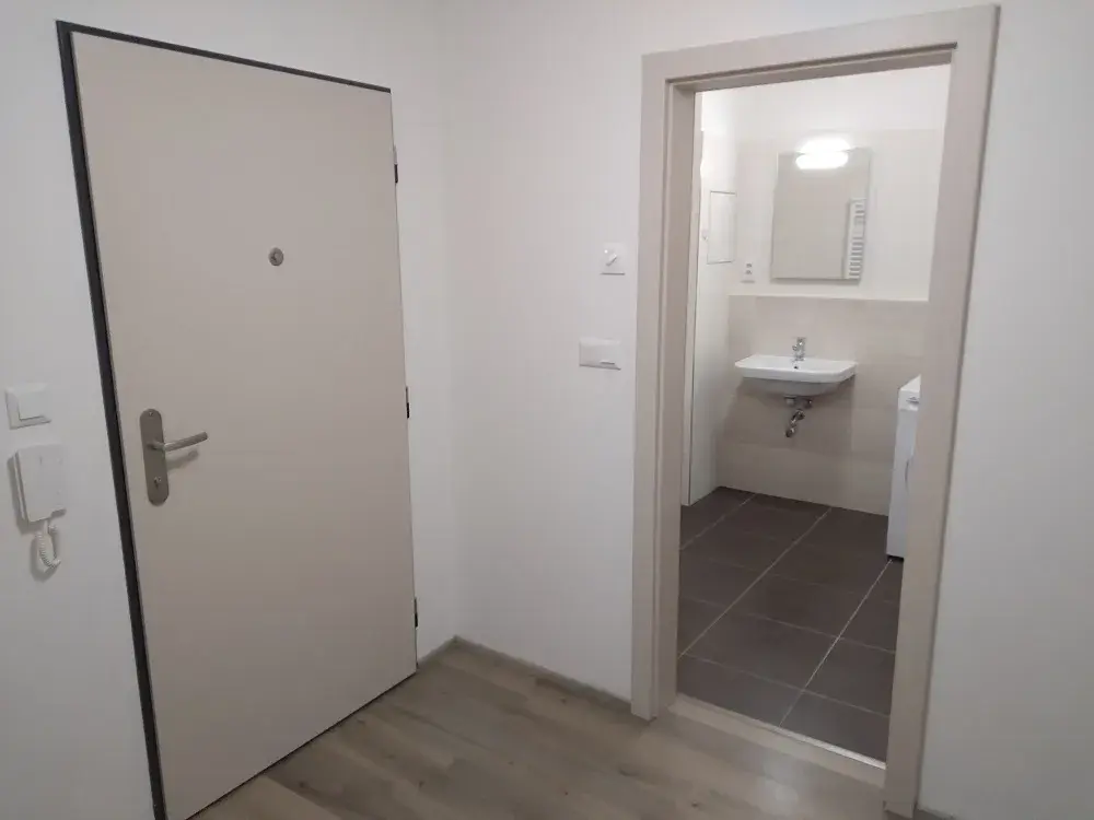Jednotka se skládá z vstupní haly, první místnosti s kuchyňským koutem (včetně kuchyňské linky včetně spotřebičů - sklokeramická varná deska, elektrická trouba, digestoř, pracovní desky, zadový panel, osvětlení, z druhé místnosti - ložnice, z koupelny s vanou, samostatného WC, komory a balkonu. V jednotce je dále i osvětlení ve všech místnostech, žaluzie, garníže na míru, v koupelně zrcadlo s osvětlením.