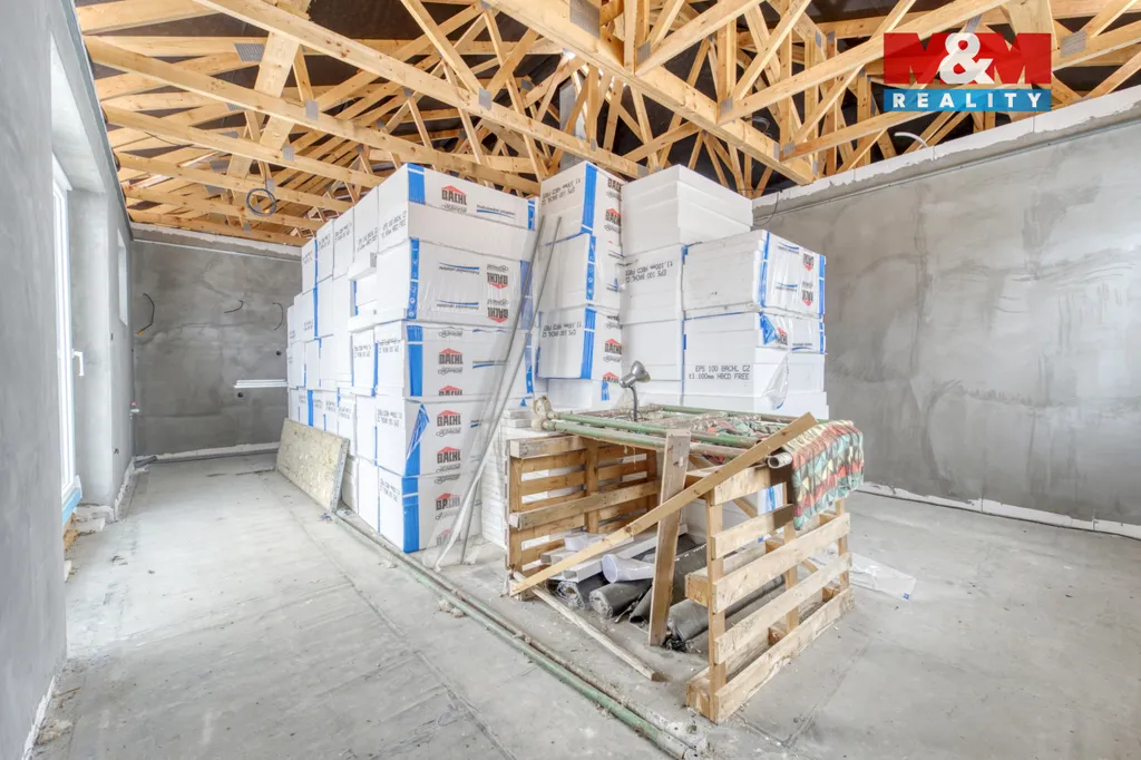 Nabízíme k prodeji rodinný dům ve výstavbě, situovaný v klidné části obce s dostatkem soukromí a krásnou okolní přírodou. Jednopodlažní dům je navržen pro pohodlné rodinné bydlení a nabízí užitnou plochu 120 m², celkem 6 místností a prostornou terasu o velikosti 43 m². Dům stojí na pozemku o rozloze 1001 m² a je v osobním vlastnictví, výstavba započala v roce 2018. Nemovitost je připravena na vlastní vrtanou studnu, domácí ČOV s akumulací vyčištěné vody a vsakem na pozemku. Elektřina je již přivedena, elektrický pilíř se nachází na hranici pozemku. Vytápění je navržené podlahovým topením v kombinaci s krbovými kamny, ohřev vody zajišťuje bojler. Parkování je možné přímo na pozemku, příjezd po zpevněné obecní komunikaci. Lokalita je ideální pro klidné bydlení i aktivní životní styl – cykloturistika, jízda na koni a pobyt v přírodě, autobusové spojení v dosahu. Pokud hledáte dům, kde si interiér vytvoříte podle sebe tak toto je ideální volba. Pro více informací kontaktujte makléře!