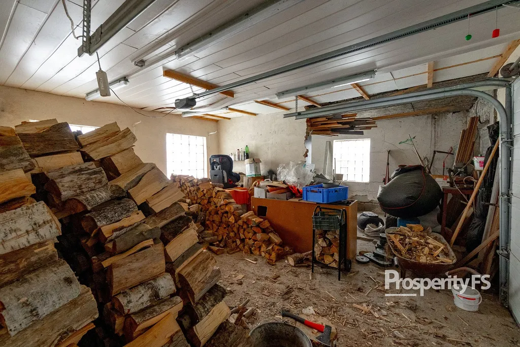 K domu náleží garáž, ze které je přímý vstup do dílny a sklepa, což poskytuje dostatek úložných i pracovních prostor. Na pozemku se nachází zahrada s pergolou, vhodná pro venkovní posezení a relaxaci.