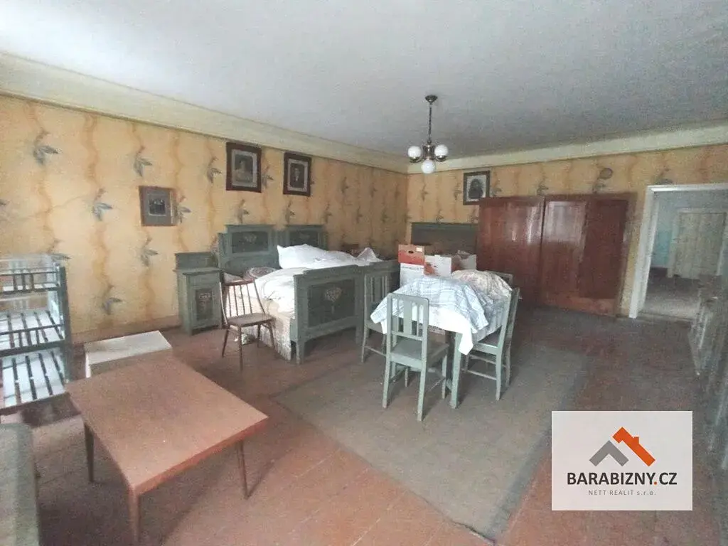 Prodej domu s komerčními prostorami a vlastním pozemkem o výměře 1.504m2 včetně zastavěné plochy domu 340m2. Dům je určený k celkové rekonstrukci, v minulosti využíván jako hostinec. Na zahradě se nacházejí ovocné stromy a zděná stodola s garáží o výměře 70m2. Dům napojený na veřejný vodovod (možno využít vlastní kopanou studnu – 5m hlubokou), el.energii 230/400V (noční proud) a kanalizaci. Vytápění ústřední na tuhá paliva – kotlem s násypkou. Dům prošel částečnou vnitřní rekonstrukcí v roce 2013: částečně nová plastová okna dveře; částečně nové rozvody elektřiny a rozvody topení včetně topných těles; nově vyvložkovaný jeden komín; nový kotel na tuhá paliva; nové betonové podlahy v přízemí; nová koupelna s WC v přízemí. Střecha kryta eternitem, v minulosti provedena izolace proti zemní vlhkosti obvodového zdiva. Jedná se o rozlehlý objekt, vhodný k podnikání nebo pro vybudování bytových jednotek. Dispozice: 1.PP – 3x sklep; 1.NP – vstupní chodba, 3x prostorná místnost, 2x sklad, koupelna s WC, kotelna, technická místnost, zadní vstup, komora, schodiště; 2.NP – hala s chodbou, 2x prostorná ložnice, 3x podkrovní místnost, půda. Doporučujeme prohlídku. PENB G.