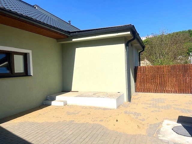 Z obývacího pokoje je možnost vstupu na pozemek o rozloze 161m². K domu patří i zahrada o rozloze 145m².