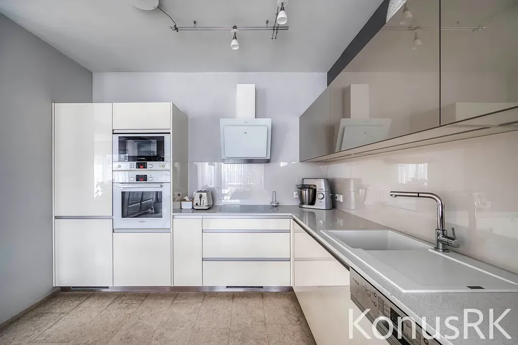Kuchyně je řešena na míru renomovanou firmou Sýkora a osazena vestavěnými elektrospotřebiči značky Bosch, což uspokojí i náročnější uživatele. Celkový prostor kuchyně a jídelny plynule navazuje na obývací část.