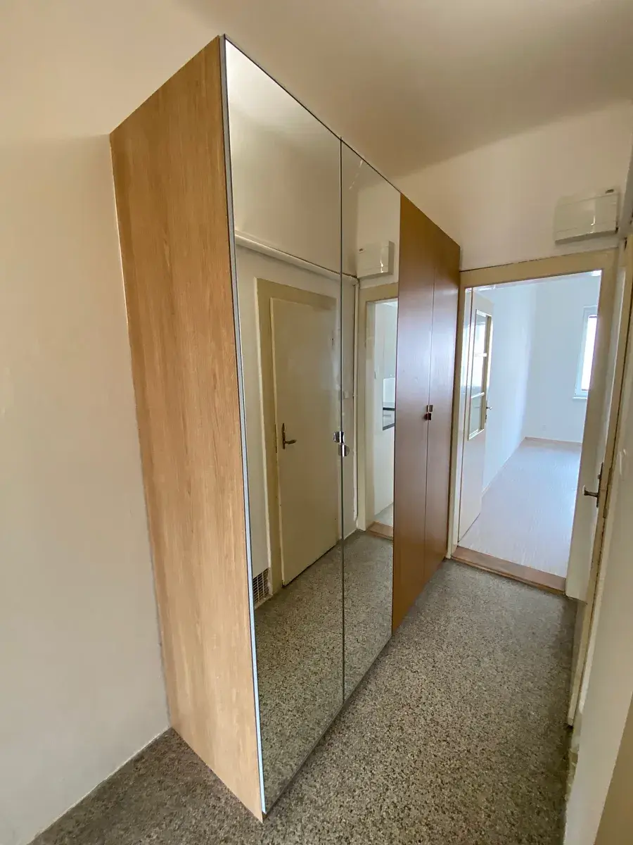 Vytápění bytu je zajištěno plynovými vafkami, ohřev vody elektrickým bojlerem. K bytu dále náleží sklepní kóje.