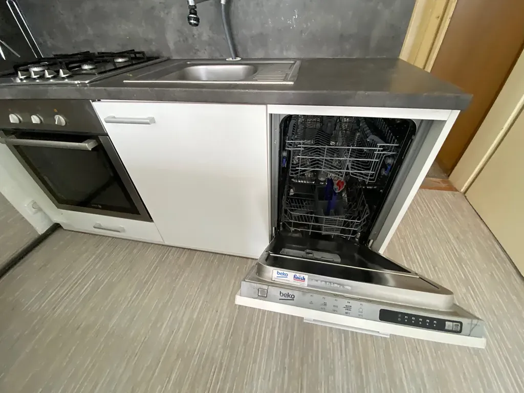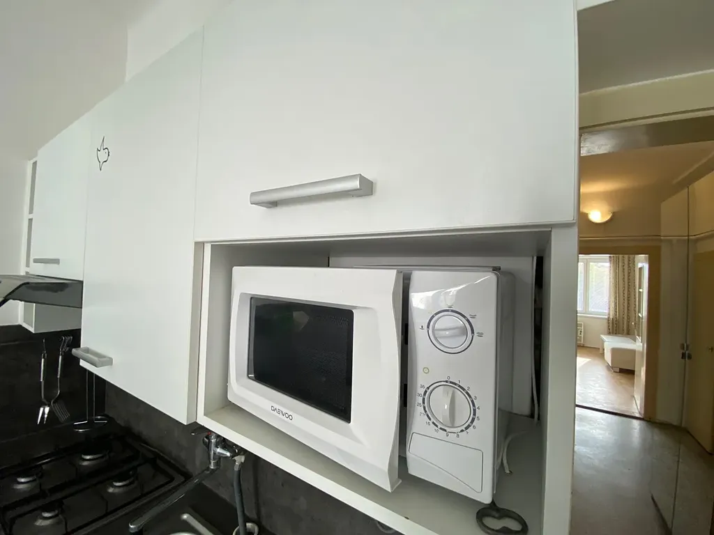 Dispozičně je byt rozdělen na vstupní předsíň se šatní skříní, koupelna s vanou ( vč. pračky), samostatné WC, prostorný obývací pokoj ( vybaven - postelí, pohovkou a stolkem) a plně vybavena kuchyň ( lednice, mikrovlnka, myčka, plynový sporák, horkovzdušná trouba) s dostatkem prostoru pro jídelní stůl.
