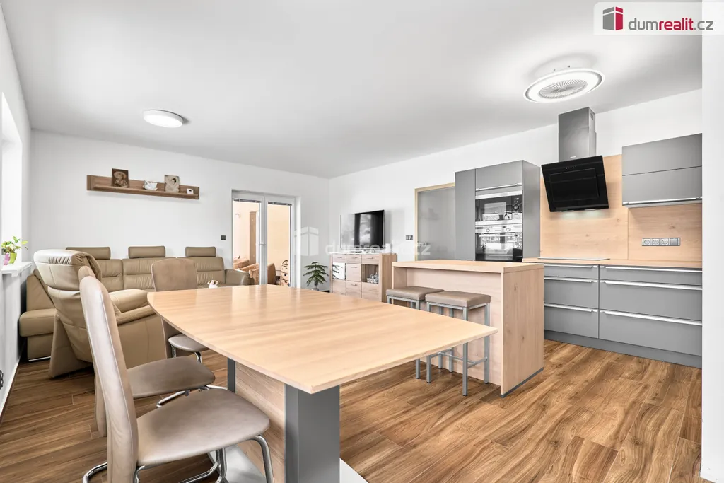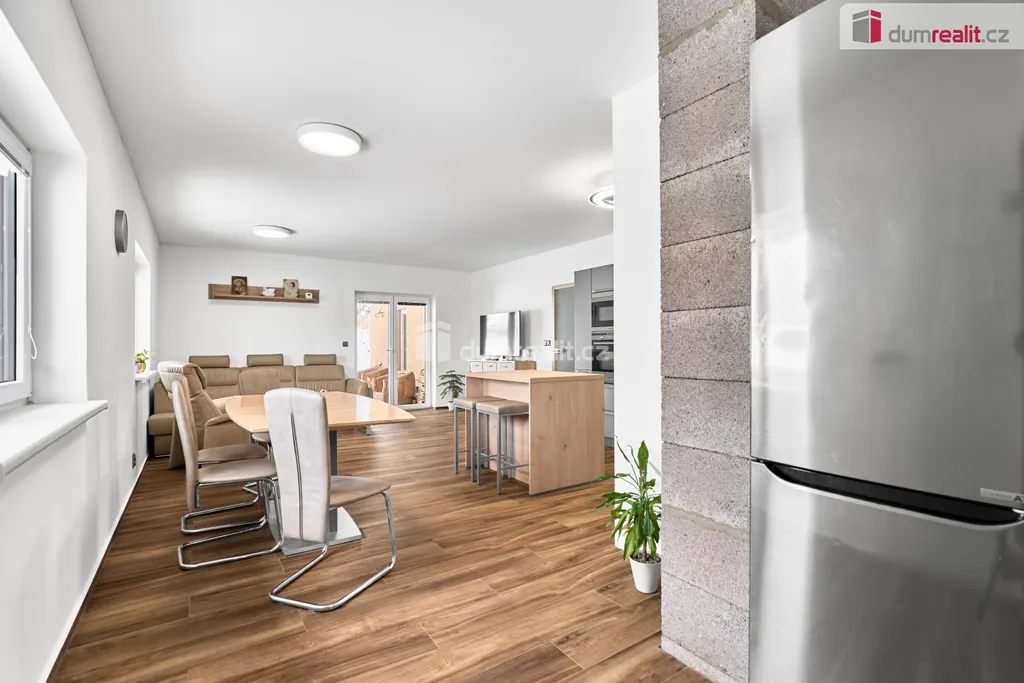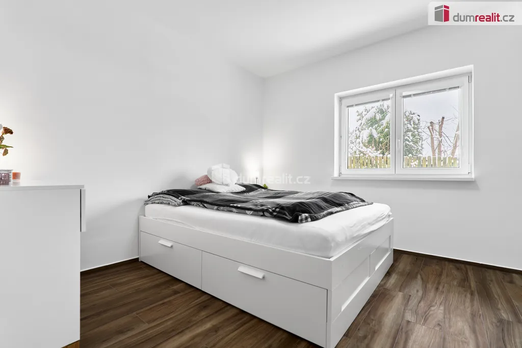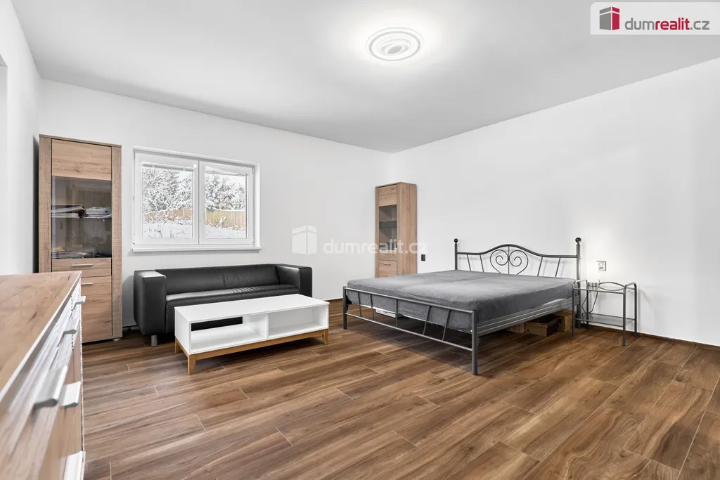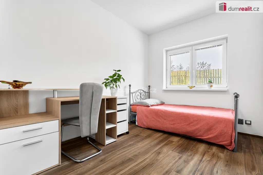 Dumrealit.cz Vám zprostředkuje prodej rodinného domu v obci Andělská Hora, v bezprostředním sousedství Karlových Varů. Přízemní dům byl zkolaudován v březnu 2023 a má dispozici 5+KK - obývací pokoj s kuchyňským koutem a vstupem na terasu, 4 samostatné pokoje, chodba a šatna u vstupu do domu, koupelna s vanou, sprchovým koutem a WC, samostatné WC s umyvadélkem a technická místnost, ve které je umístěn elektrokotel, el. bojler, pračka a sušička. Dále je v domě místnost - sklad na zahradní vybavení se vstupem pouze zvenčí ze zahrady. Kuchyň je vybavena vestavěnými spotřebiči - el. trouba, indukční varná deska, myčka nádobí, digestoř a mikrovlnná trouba. V celém domě je na podlaze dlažba, vytápěn je podlahovým topením, v obývacím pokoji je vše připraveno na instalaci krbových kamen. Na zahradě je retenční nádrž (8 m²) se svodem dešťové vody, pozemek není oplocen. Možnost financování hypotékou, kterou Vám rádi vyřídíme. Ev. číslo: 654262.
