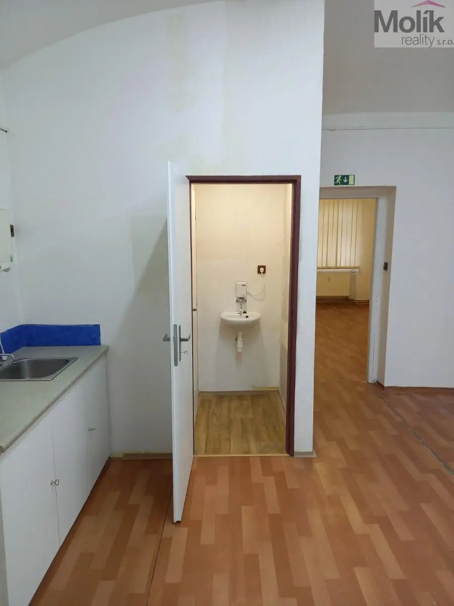 Dispozice: Hlavní prostor (26,67 m2), vedlejší prostor s kuchyňským koutem (21,40 m2), sociální zařízení s WC (2,5 m2), společná chodba v přízemí domu.