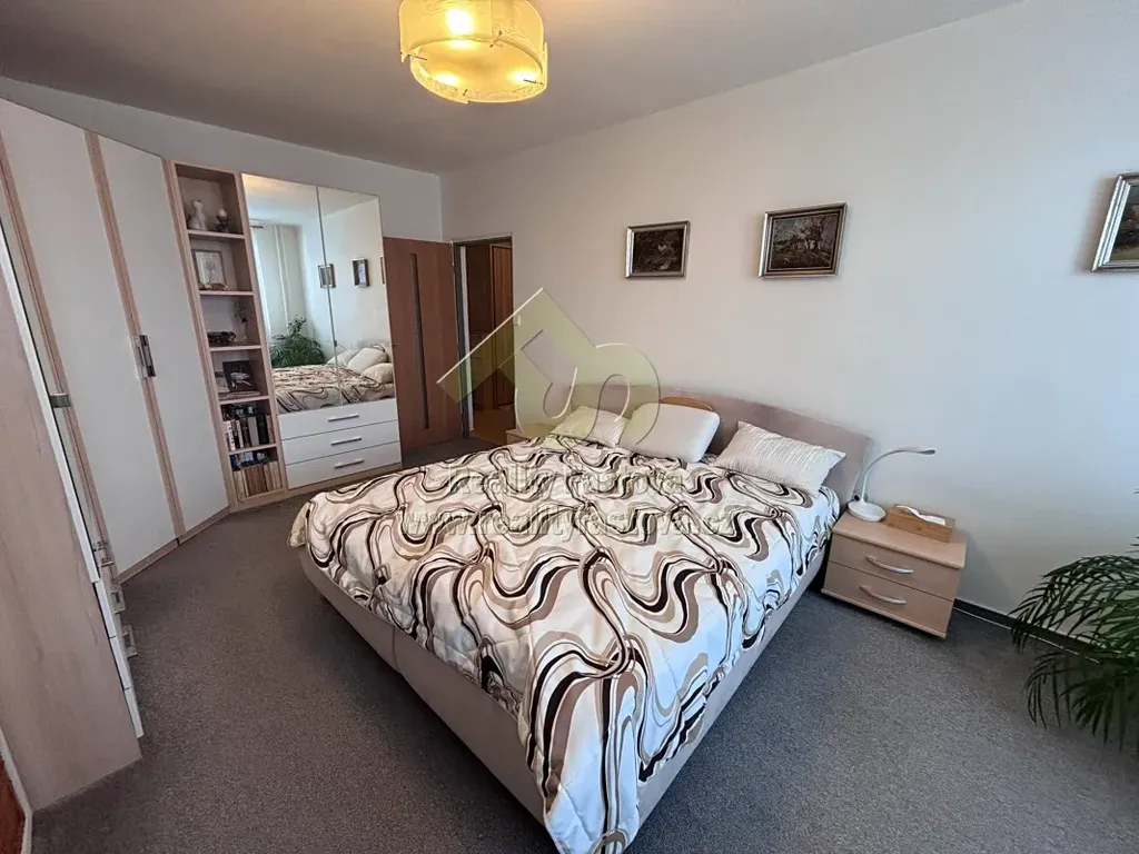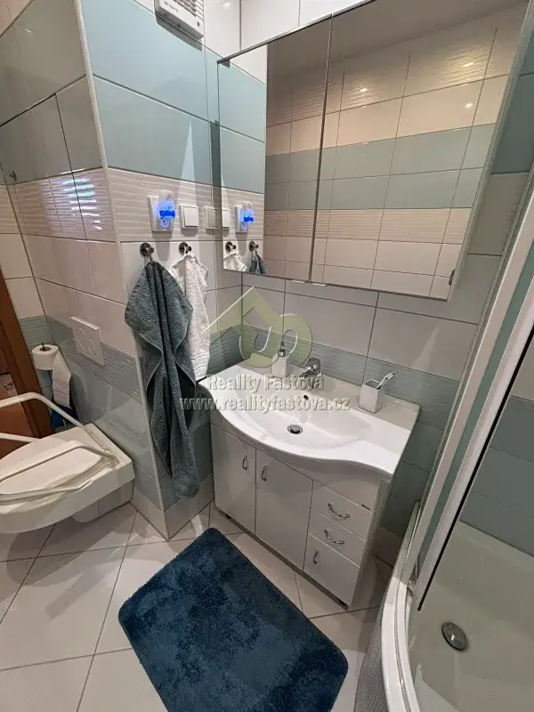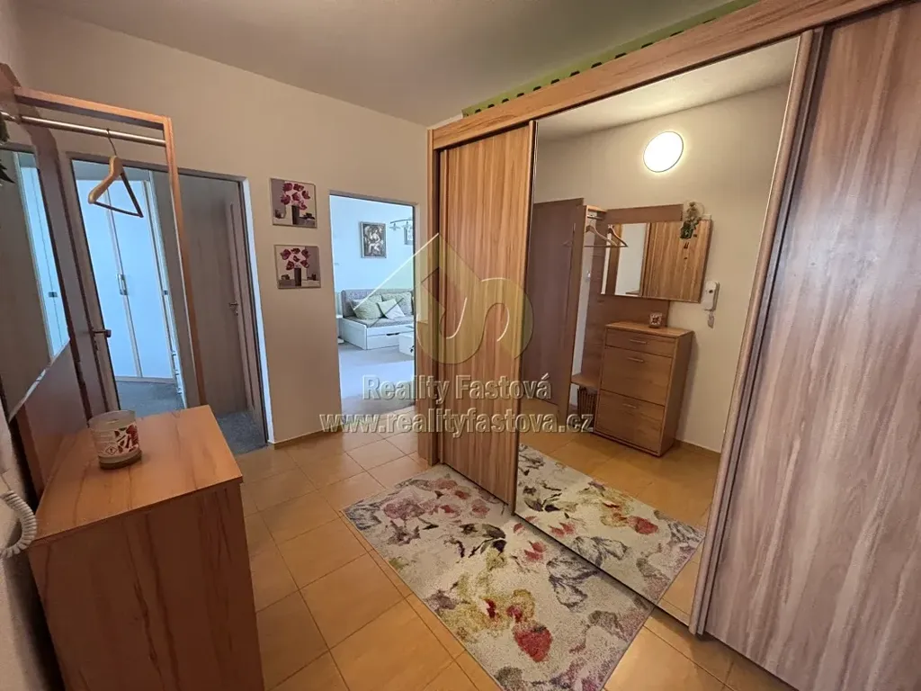 V bytě bude k dispozici veškeré vybavení dle fotek, tzn. kuch.linka vč. vestav.spotřebičů – myčky, plyn.sporáku s el.troubou, digestoří, lednicí s mrazákem. Dále jídelní stůl a židle a další kuch.nábytek. Ve vstupní chodbě je umístěná velká šatní a botní skříň, v prostorné koupelně je osazen sprchový box, skříňkové umyvadlo, pračka a toaleta. V ložnici bude k dispozici rám manželské postele, šatní skříně, komody, pracovní stůl,atd. V obývacím pokoji bude k dispozici obýváková TV stěna a další drobný nábytek.