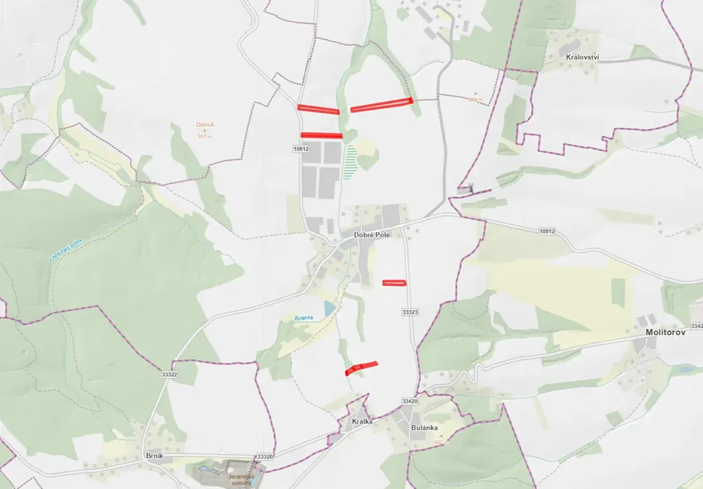V katastrálním území Dobré Pole u Vitic, okres Kolín, nabízíme k prodeji zemědělské pozemky v různých podílech, zapsané na listech vlastnictví č. 921, 1365 a 857. Celková výměra všech pozemků činí 39 644 m², přičemž součet podílů nabízených k prodeji představuje 27 551 m².