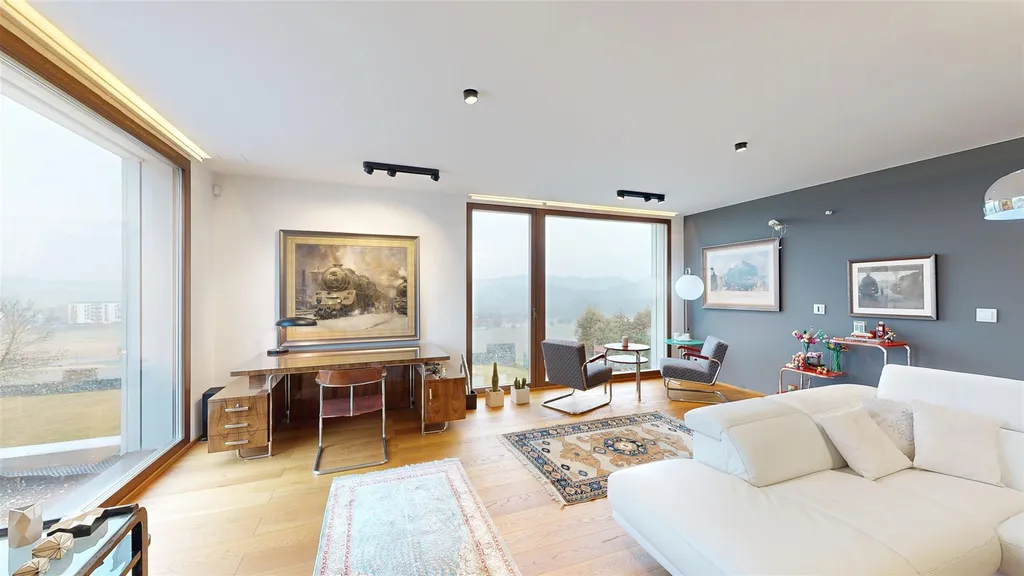 Nabízíme k prodeji výjimečný moderní rodinný dům kolaudovaný v roce 2023, situovaný v obci Tmaň, velice blízko města Králův Dvůr, v klidném prostředí s dostatkem soukromí a dobrou dostupností do Berouna i Prahy. Dům o celkové vnitřní užitné ploše 294 m² je umístěn na pozemcích o celkové výměře 1 634 m², které poskytují nadstandardní prostor pro rodinné bydlení, relaxaci i další rozvoj. Z domu a pozemku se otevírají jedinečné, ničím nerušené panoramatické výhledy na ikonické dominanty Českého krasu – masiv Kotýzu, vrch Zlatý kůň a skalní útvar Aksamitova brána, které dodávají místu výjimečnou atmosféru a prestiž.