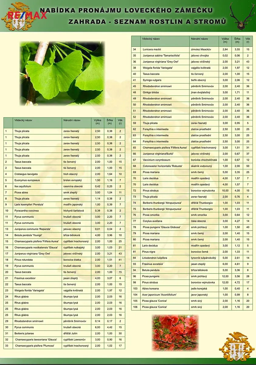 • Rozsáhlý pozemek – Zastavěná plocha a nádvoří 1 342 m², zahrada 4 629 m² s odvodněním drenážemi. Část zahrady tvoří ovocný sad s různými druhy ovoce. Orná půda a ostatní plocha 1 502 m².