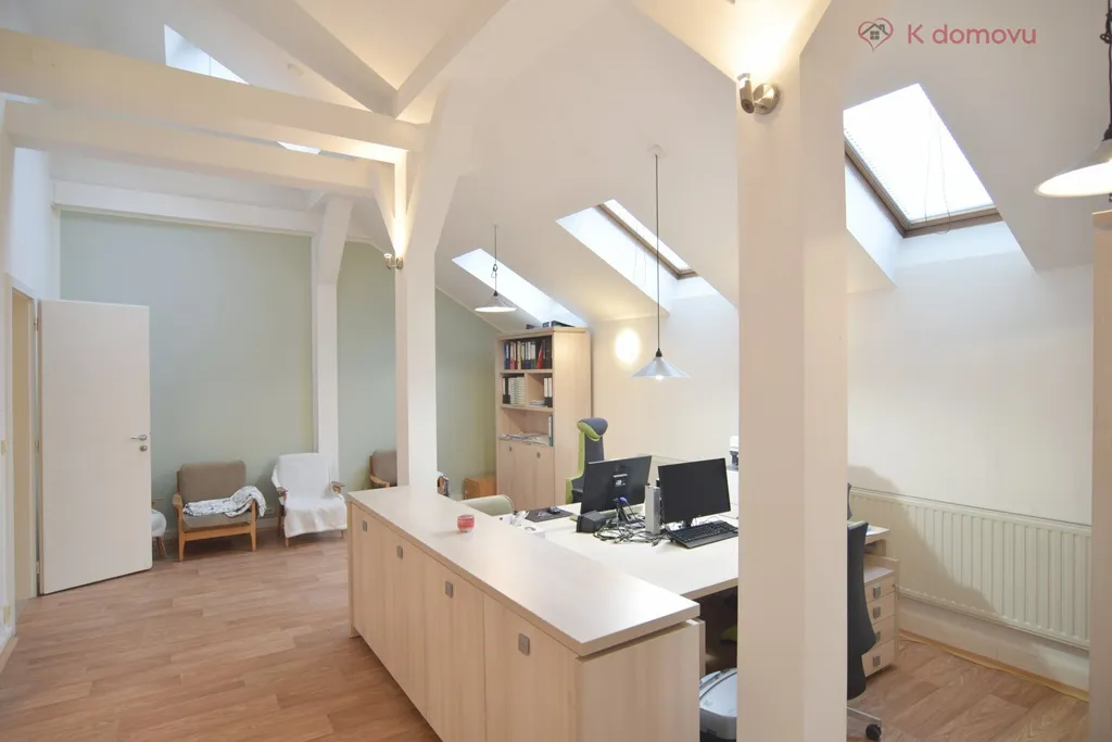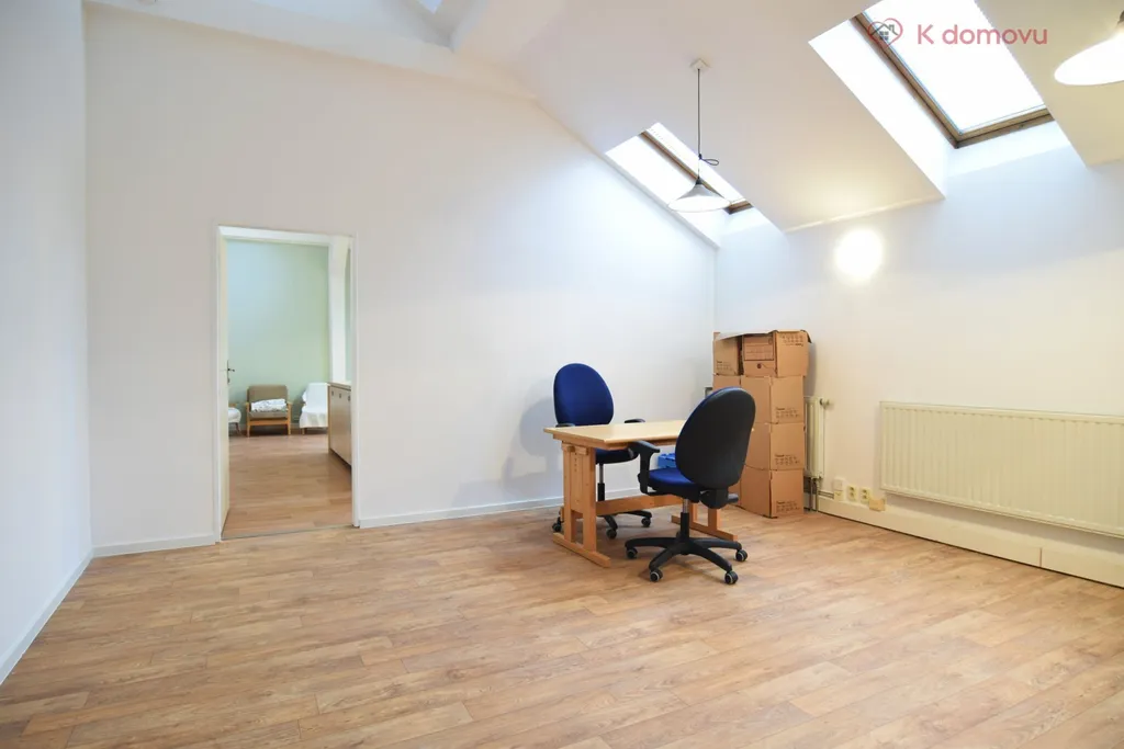 Pronájem nebytových prostor vybudovaných v podkroví činžovního domu na ulici Pekařská v Brně. V současnosti je nabízen prostor o dispozici 2+kk.