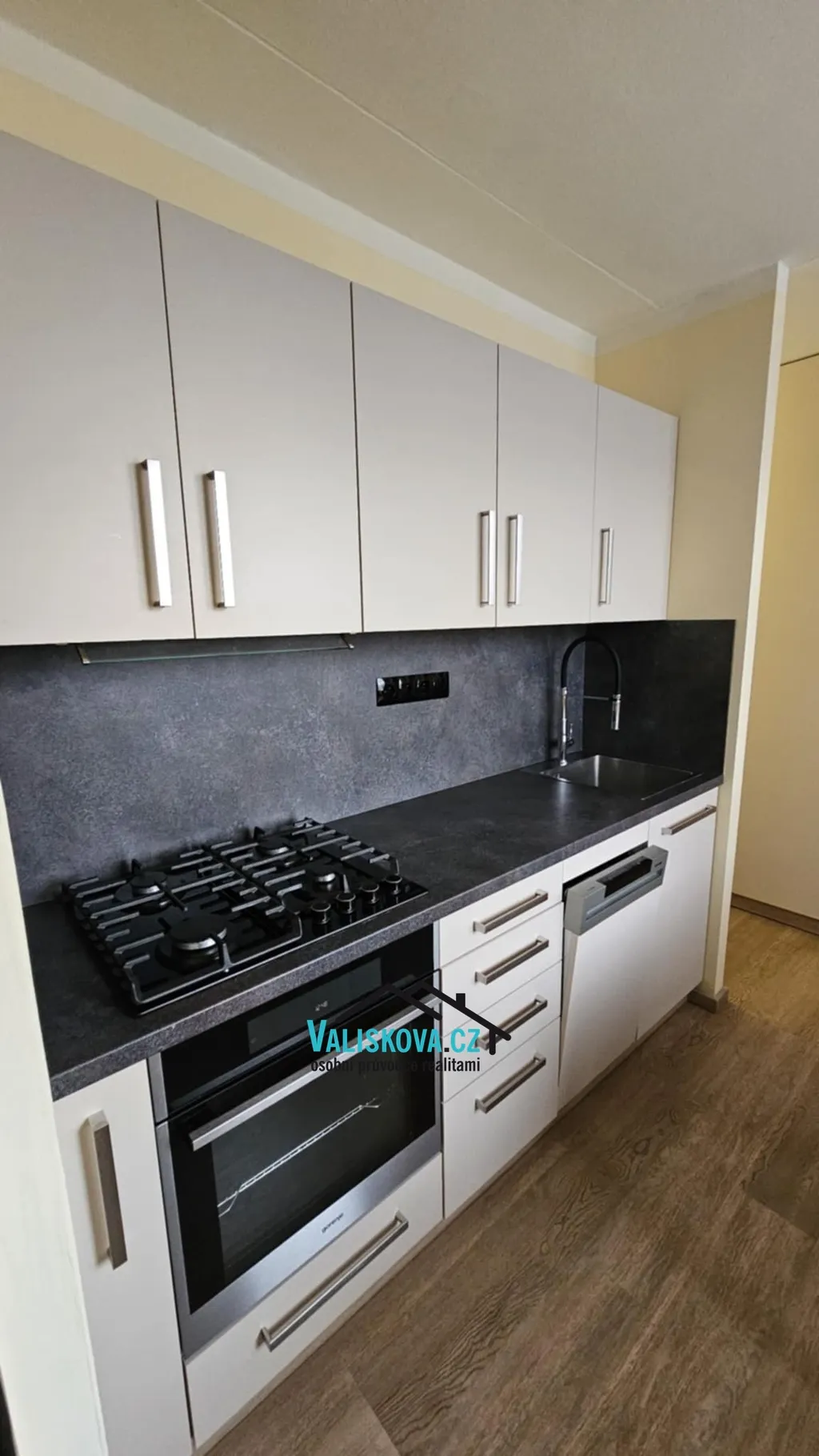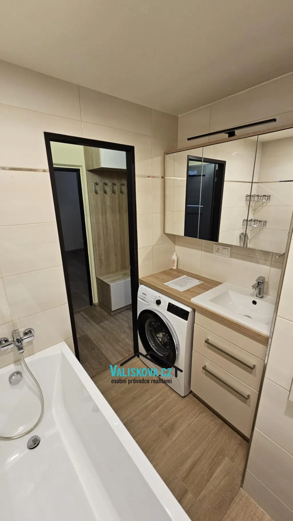 Interiér bytu prošel kompletní a pečlivou rekonstrukcí – nové podlahy, moderní interiérové prvky i bezpečnostní vstupní dveře. Kuchyň je vybavena elegantní a praktickou kuchyňskou linkou s vestavěnou myčkou. Designově řešená koupelna nabízí vanu, nový koupelnový nábytek a vestavěnou pračku, vše s důrazem na funkčnost a čistý vzhled.