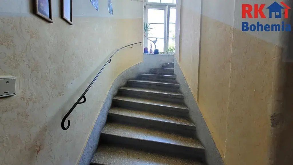Dispozice: předsíň, koupelna se sprchovým koutem + WC, ložnice, prostorný obývací pokoj, kuchyně, spíž, k bytu náleží dva sklepy.