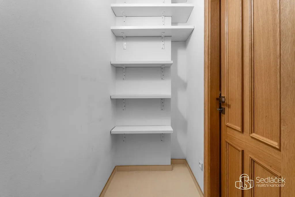 Byt disponuje prostornou koupelnou s vanou, sprchovým koutem, toaletou a bidetovou sprškou. Druhé WC je oddělené. Vstupní hala nabízí velkou vestavěnou skříň a dostatek úložného prostoru.
