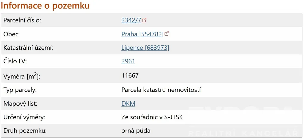 • Budoucí produkční zóna: Podle nového Metropolitního plánu (lokalita 633 / Lipence rozvoj) je menší část pozemku (cca 3 000 m²) definována jako zastavitelná stavební plocha se způsobem využití „produkční“.