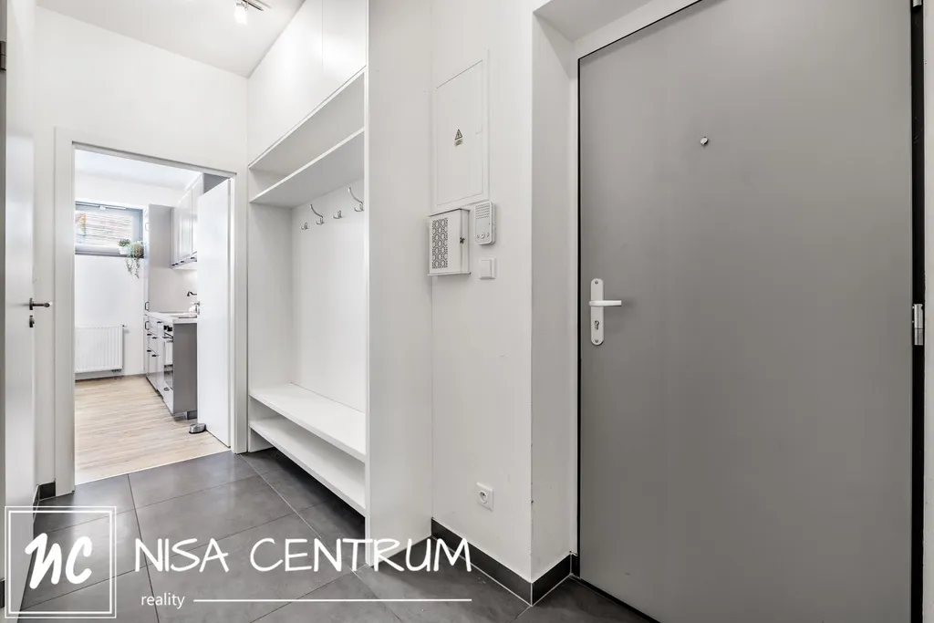 Dispozici plně vybaveného bytu tvoří vzdušný obývací pokoj s kuchyňským koutem a lodžií orientovanou na severozápad, ložnice, koupelna s prostorným sprchovým koutem a toaletou, vstupní chodba a technická místnost.