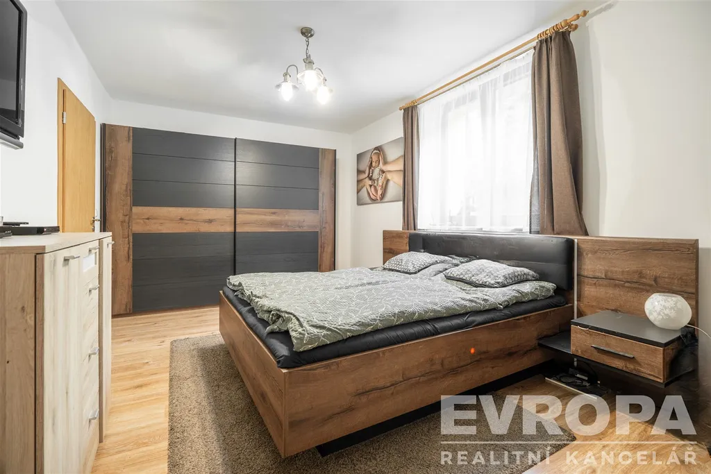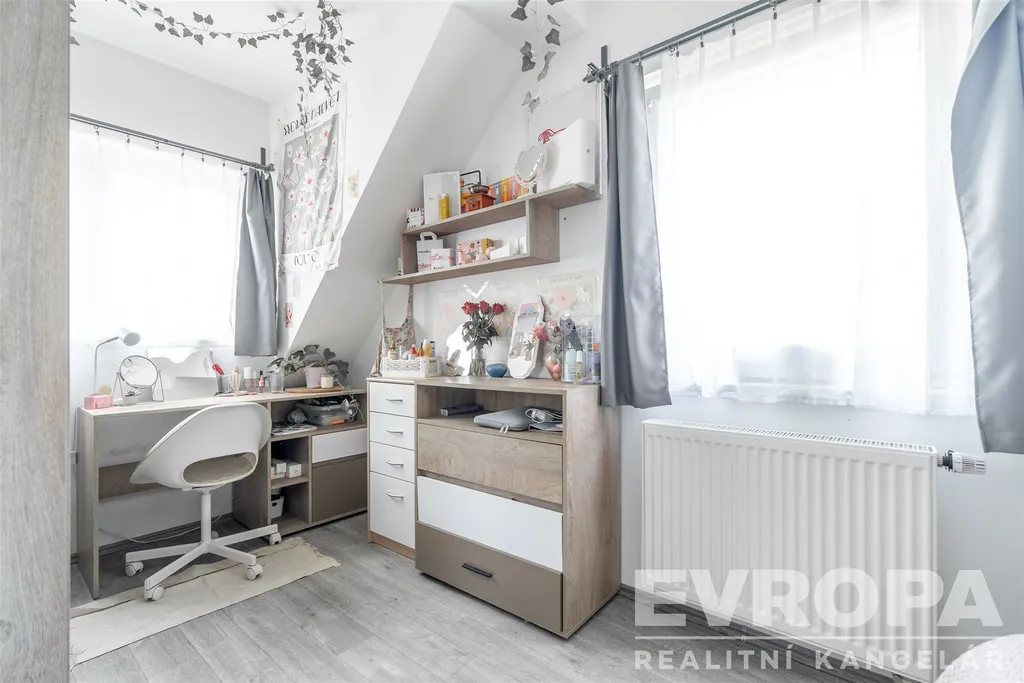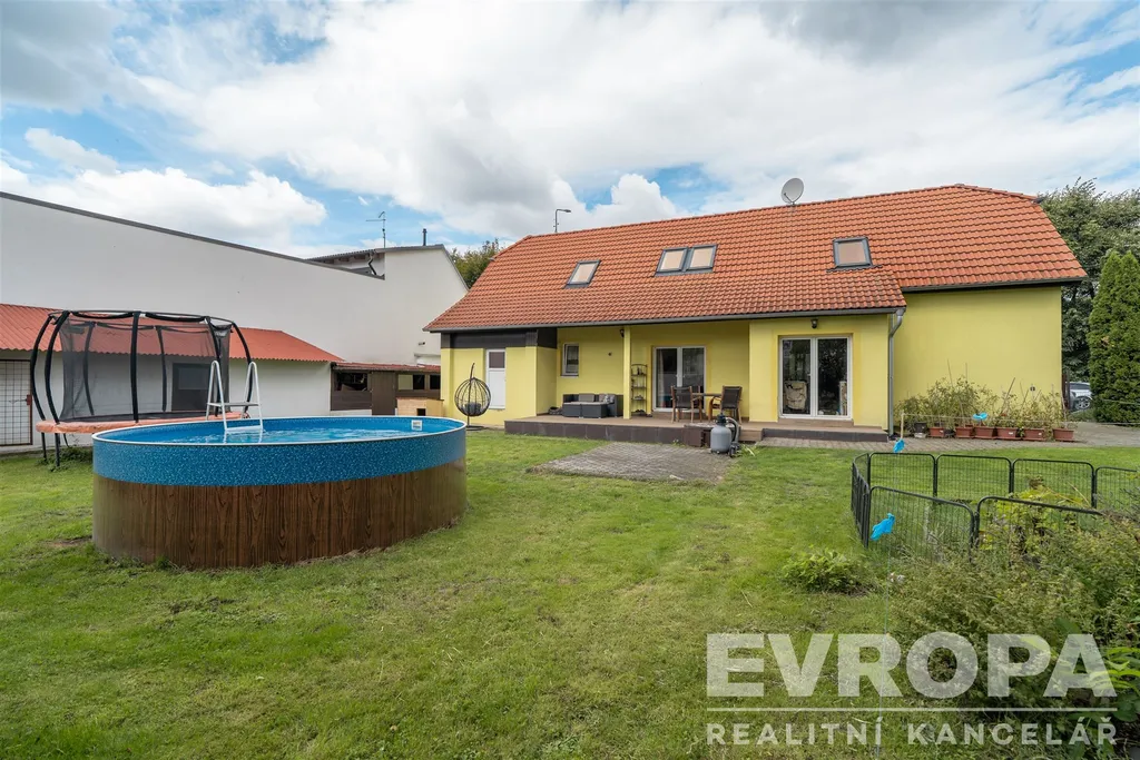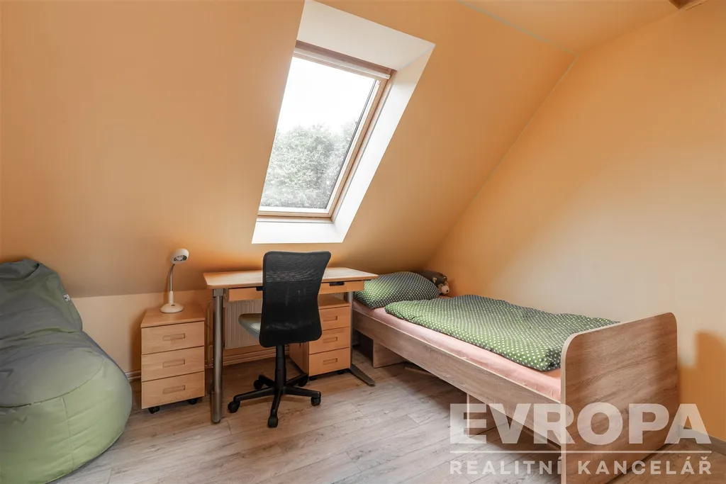 K prodeji nabízíme rodinný dům v ulici Bezručova, který prošel nákladnou rekonstrukcí až do dnešní podoby, v přízemí a podkroví je zhruba 180m2 bytové plochy pro celkem šest pokojů, kuchyň a další prostory. Přízemí je šikovně prosvětlené francouzskými okny na zahradu, obývací pokoj, ložnici a kuchyň doplňuje koupelna, toaleta, technická místnost, šatna a hala. Obývací pokoj je průchozí přímo na kryté venkovní posezení, orientované na jih do klidného vnitrobloku. V podkroví jsou čtyři dětské pokoje a vlastní koupelna s toaletou. Přípojka na obecní vodovod, kanalizaci, k dispozici samozřejmě elektřina a plyn. Ústřední topení na plynový kotel, ohřev vody zabezpečují dva bojlery. Internetové připojení: vysokorychlostní připojení přes optický kabel.