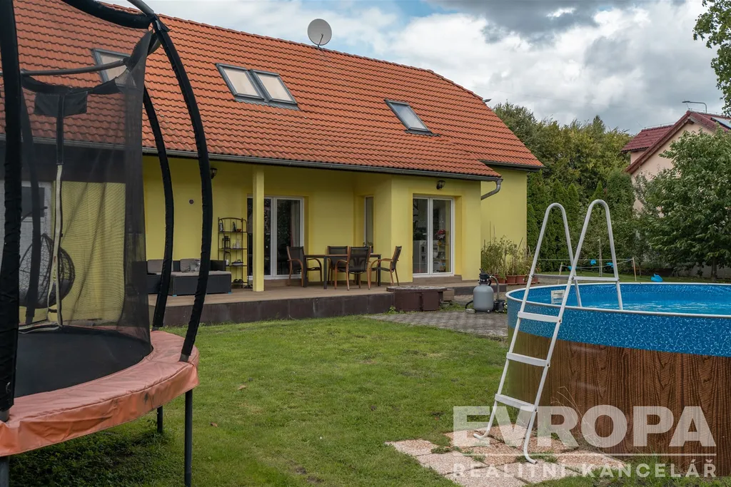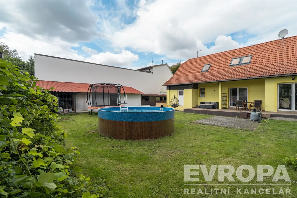 Na zahradu se vejde bazén i trampolína, kutilové ocení zděnou vedlejší stavbu, kde se dá montovat, opravovat, skladovat, schovávat se před manželkou, parkovat motorku, lyže, nebo psa… Prostě prostor pro široké využití. Na zahradě je i původní studna, takže napouštění bazénu nemusí být až tak nákladné.