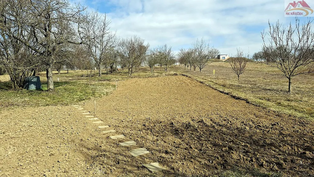 Z druhé strany přístavby je vstup na zahradu s ovocnými stromy, vinohradem se sedmi řádky, asi 450 hlav bobulí - Veltlínské zelené, Burgundské bílé, Sauvignon, André, Zweigeltrebe. Celková plocha zahrady je 2 663 m².