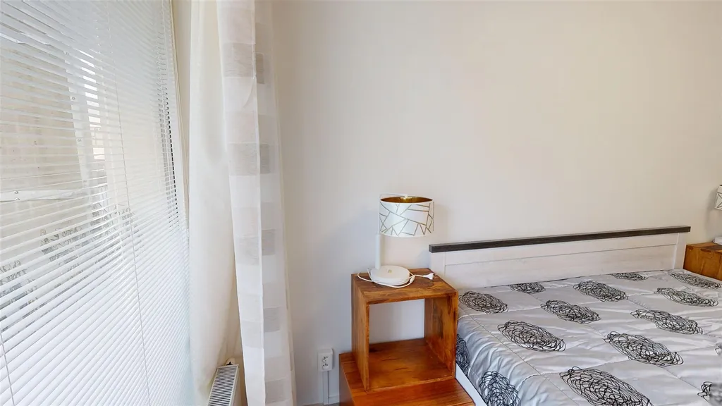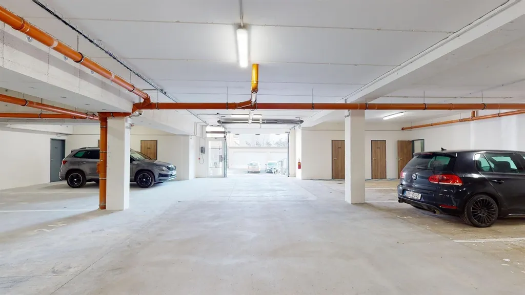 Byt má podlahovou plochu 64,6 m² a k dispozici je prostorná terasa o výměře 14,8 m², sklepní kóje o velikosti 2,8 m² a kryté parkovací místo v podzemní garáži. Dispozičně je byt velmi dobře řešený, světlý a vzdušný, připravený k okamžitému nastěhování bez nutnosti jakýchkoli dalších investic. Součástí bytu je obývací pokoj s kuchyňským koutem o velikosti 32,7 m², vybavený sedací soupravou, televizí, obývací stěnou, knihovnou a pracovním stolem. Kuchyňská linka je plně vybavena vestavěnou lednicí s mrazákem, troubou, mikrovlnnou troubou, varnou deskou, myčkou nádobí, digestoří a jídelním stolem se židlemi. Ložnice o velikosti 13,5 m² je vybavena postelí, nočními stolky, lampičkami, komodou a úložnými policemi. Vstupní chodba o velikosti 11,2 m² nabízí dvě vestavěné skříně, botník a věšákovou stěnu. Koupelna s toaletou má výměru 6,7 m² a je vybavena vanou, pračkou a elektrickým topným žebříkem.