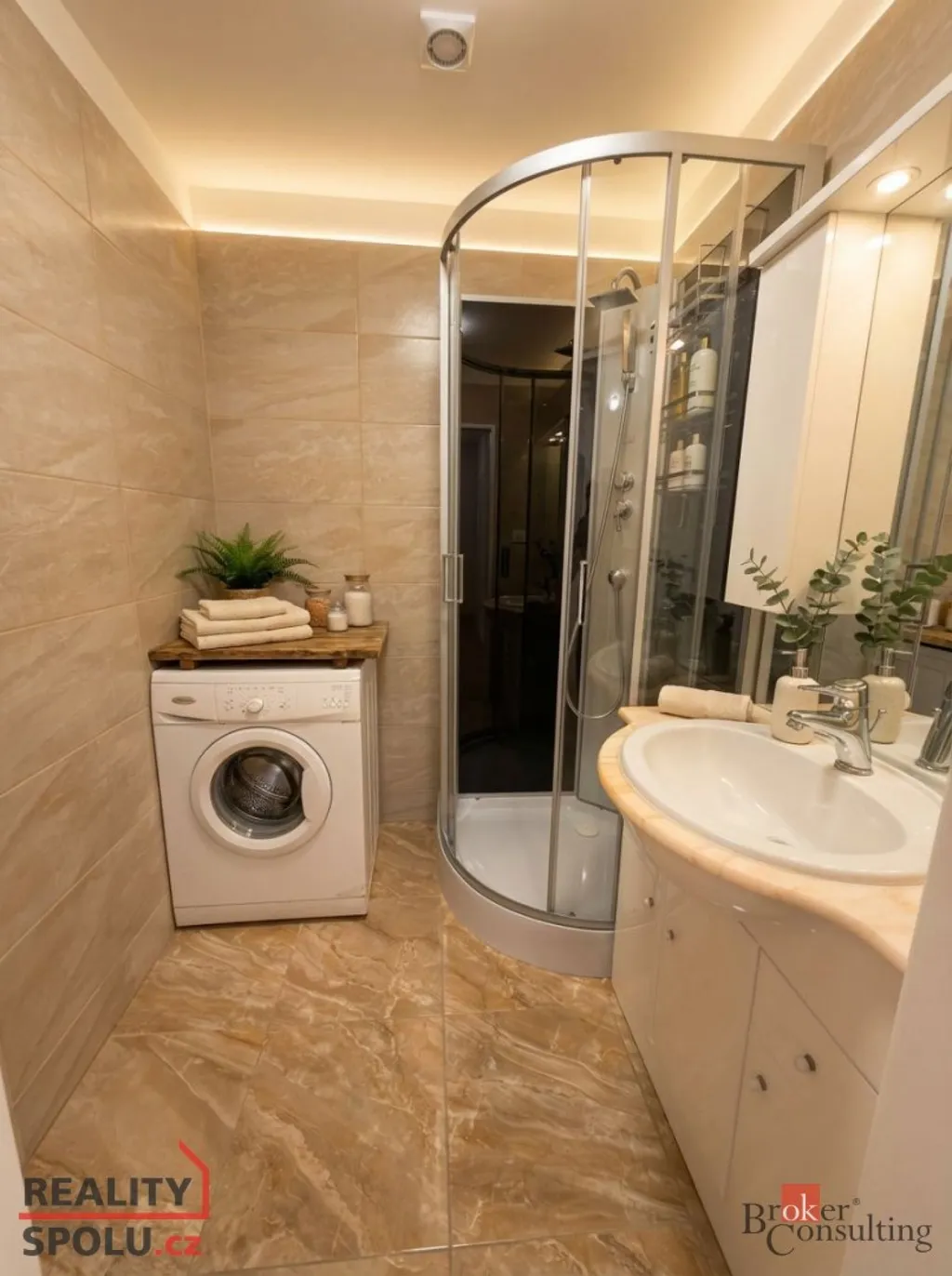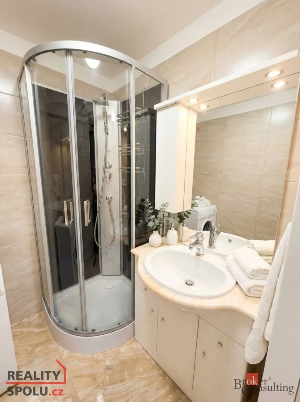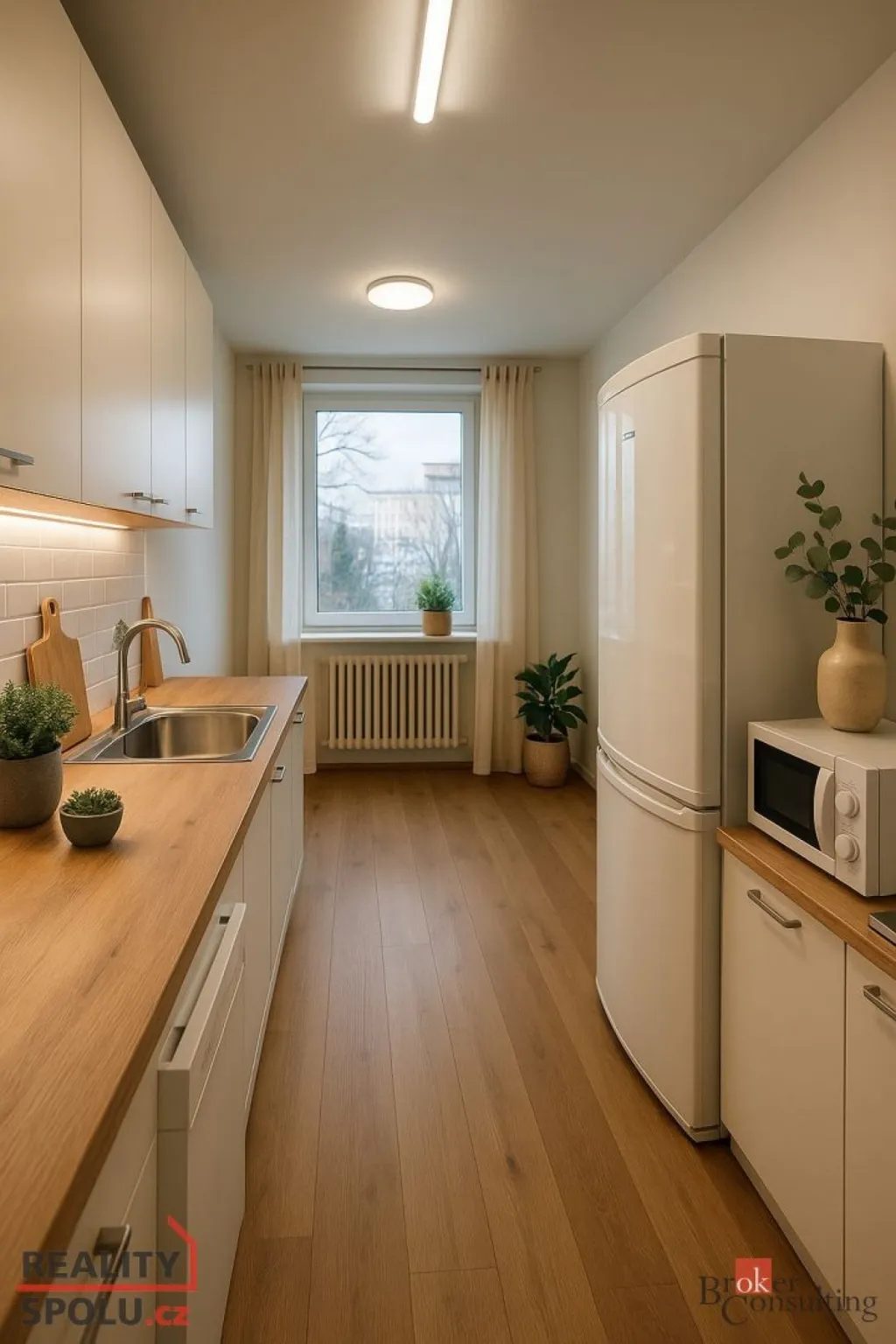 Byt je po rekonstrukci, ve velmi udržovaném stavu a částečně vybavený. Kuchyň o velikosti 9 m² je osazena kuchyňskou linkou se spotřebiči – plynový sporák s elektrickou troubou, digestoř, myčka na nádobí, mikrovlnná trouba, kombinovaná lednice s mrazákem a pračka.
