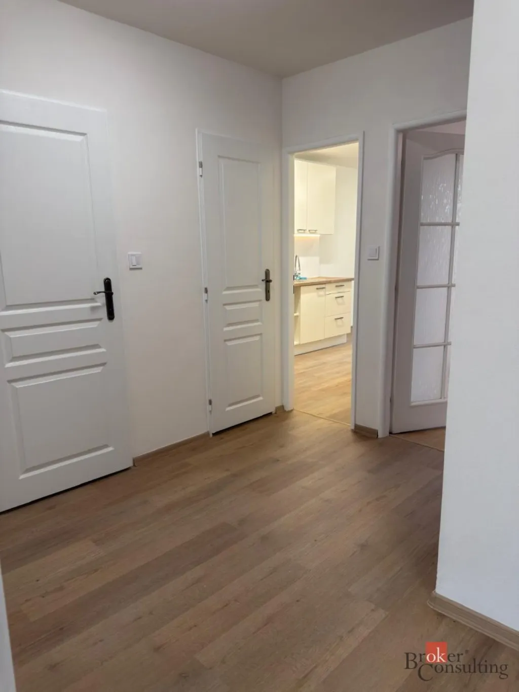 Dispozice bytu zahrnuje prostorný obývací pokoj (21 m²) a dva samostatné pokoje (12 m² a 12,5 m²), což z něj činí ideální bydlení pro rodinu nebo pár. Součástí bytu je také komora poskytující praktický úložný prostor a na chodbě se nachází vestavěná skříň. K bytu náleží lodžie o ploše 6,8 m², vhodná k relaxaci či sušení prádla, a dále sklep.
