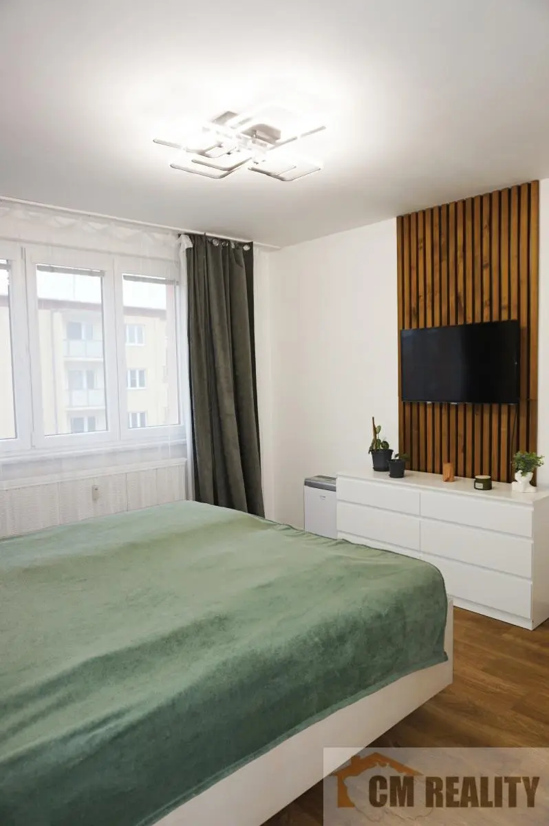 Byt má velmi dobrou dispozici s neprůchozími prostornými pokoji a prostornou kuchyní, která je po změně dispozice bytu propojena s obývacím pokojem. Po vstupu do bytu Vás uvítá prostorná široká chodba s velkým botníkem hned u vstupu a velkou vestavěnou šatní skříní v zadní části chodby. V koupelně je vana se skleněnou zástěnou a umyvadlo se skříňkou. V kuchyni je kuchyňská linka na míru s vestavěnými spotřebiči. Byt prošel celkovou nákladnou a velmi zdařilou rekonstrukcí. Nové podlahy, nová elektroinstalace, nábytek a stolářské dekorační prvky jsou zhotoveny na míru, vč. praktického pracovního koutu v obývacím pokoji. Koupelna a WC jsou také po celkové rekonstrukci (nové odpady, zařizovací předměty, obklady, dlažba). V ložnici byla změnou dispozice vybudována menší šatna.