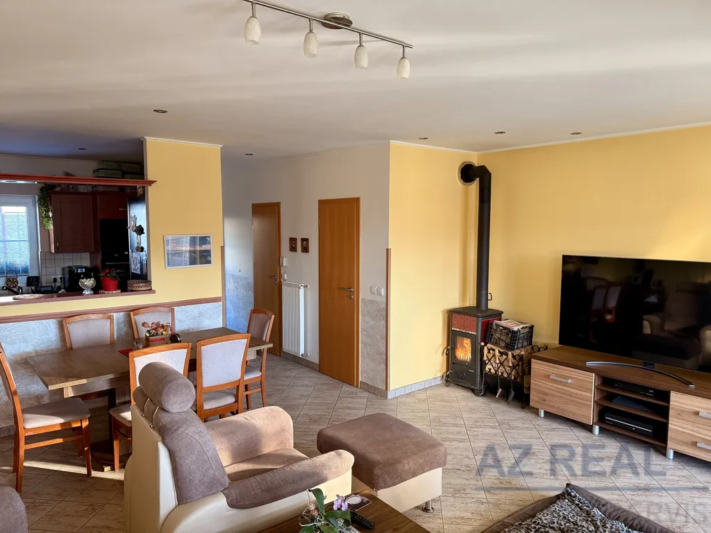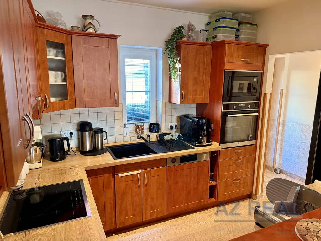 Vybavení a technický stav: Velmi dobrý stav domu, pečlivě udržovaný, nadstandardní kuchyň se spotřebiči, nový plynový kondenzační kotel, krbová kamna, žaluzie, velmi nízké provozní náklady cca 3.000 Kč/měs.