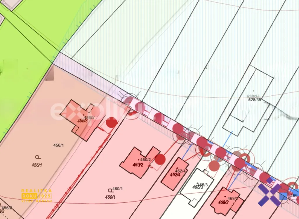 Pozemek má šířku přibližně 14-24 metrů a délku zhruba 36 metrů. Tyto parametry umožňují pohodlné umístění rodinného domu se zachováním dostatečných odstupů od okolní zástavby i prostoru pro parkování, terasu, zahradní domek, pergolu či další prvky podle vašich představ. Tvar a charakter pozemku nabízí flexibilitu při návrhu domu i celkového uspořádání zahrady.
