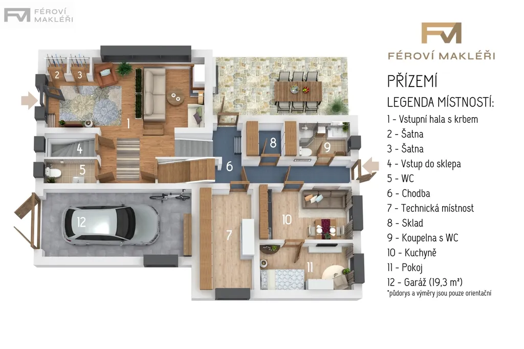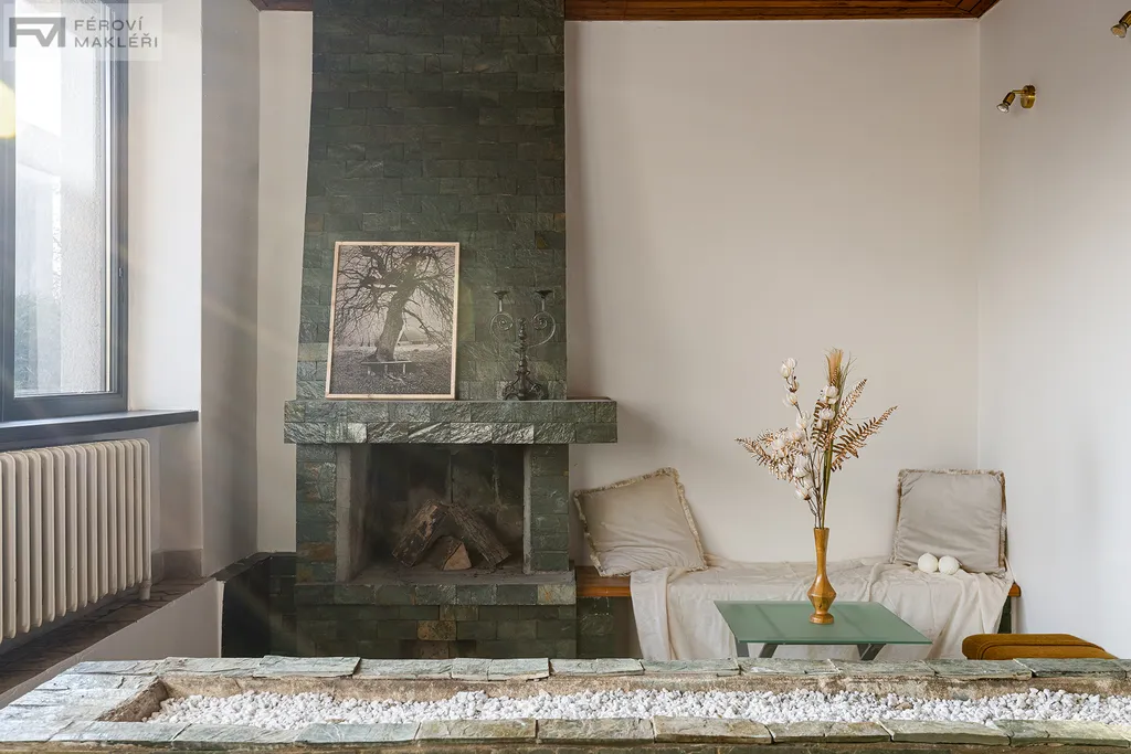Zároveň může jít i o zajímavou investiční příležitost – dům lze pronajímat větší rodině nebo dokonce dvěma samostatným domácnostem. Jedná se o rodinný dům s garáží z roku 1986, který uspokojí i početnější rodinu. Dům nabízí dva samostatné byty o dispozicích 5+1 a 1+1, dále šatnu, komory, technickou místnost a menší sklep. Součástí domu je prostorná vstupní hala s krbem, která vytváří příjemnou atmosféru hned při vstupu. K pohodlí bydlení přispívá také velký obývací pokoj s jídelnou a balkonem, odkud je pěkný výhled do zahrady i na přilehlý les, vše je dobře vidět na přiložených půdorysech jednotlivých pater. Dům je celkově velmi prostorný a prakticky řešený. Každý člen rodiny zde může mít svůj vlastní pokoj i dostatek soukromí. Zahrada je udržovaná a velikostně tak akorát:-)– poskytne prostor pro relax i posezení, aniž by vyžadovala náročnou údržbu. Grilování a posezení je možné na zastřešené terase, na kterou se vstupuje přímo z přízemí domu.